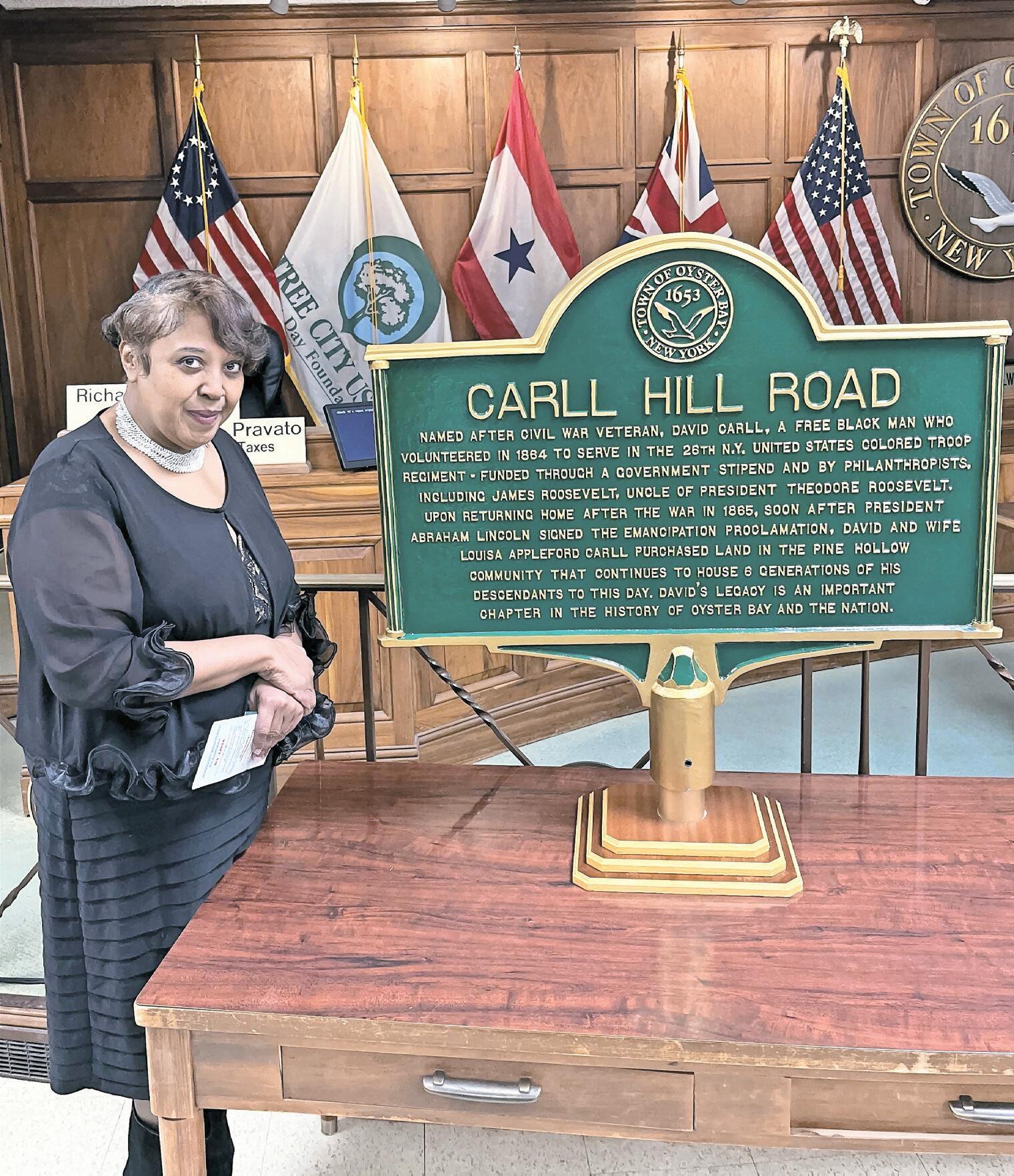 Sitting proudly on the dais in town hall was the new plaque which will honor Carll, a freeman originally from Cold Spring Harbor who at 18 joined the 26th regiment of the U.S. Colored Troops and went on to become a prominent landowner in the area. The plaque