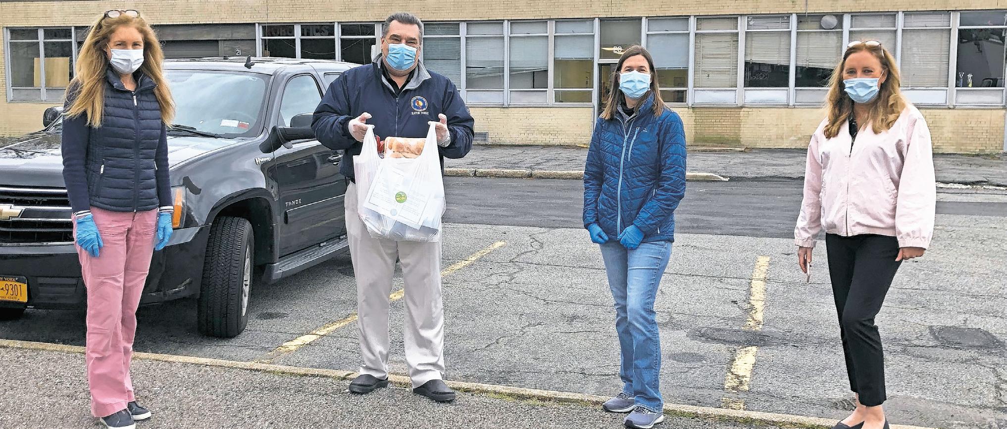 Courtesy Courtney Callahan COURTNEY CALLAHAN, NOSH co-founder, far left; former Glen Cove Mayor Tim Tenke; Linda Eastman, Nosh’s head of operations; and County Legislator Delia DeRiggi-Whitton joined forces to help families in need during the pandemic.