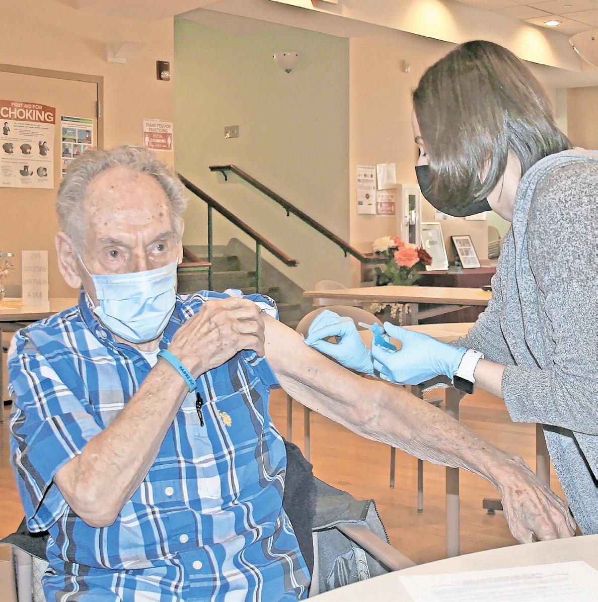 Laura Lane/Herald file NANCy CAsALE stops to thank pulmonary rehabilitation director Lynda Torel outside the Glen Cove Center for Nursing and Rehabilitation last July, after battling Covid-19 and its aftermath for months. Nancy never let her age — 95 — stand in the way.