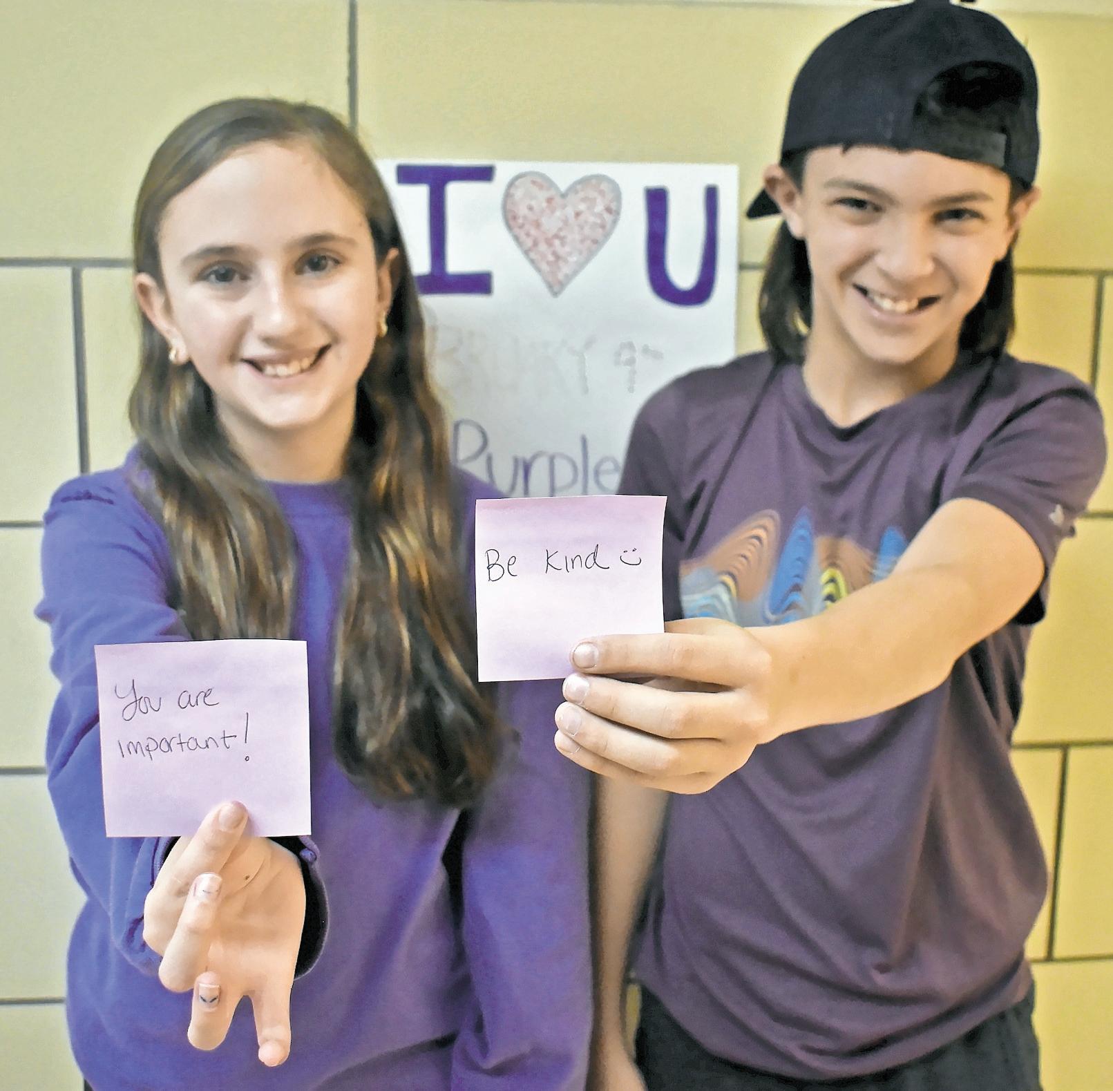 Seventh graders Jovie Hartmann and sixth grade Gabe Peters shared nspirational sticky notes that