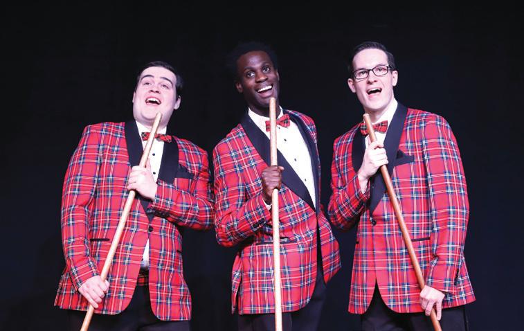 ANtHoNy leRRo, fAR left, as SpongeBob, with Hunter Fasano, who plays Squidward Tentacles, and Kristien Koppe, playing Eugene Krabs. The stage production of ‘SpongeBob,’ according to the cast, humanizes the characters but leaves plenty of room to get creative with the costumes.
