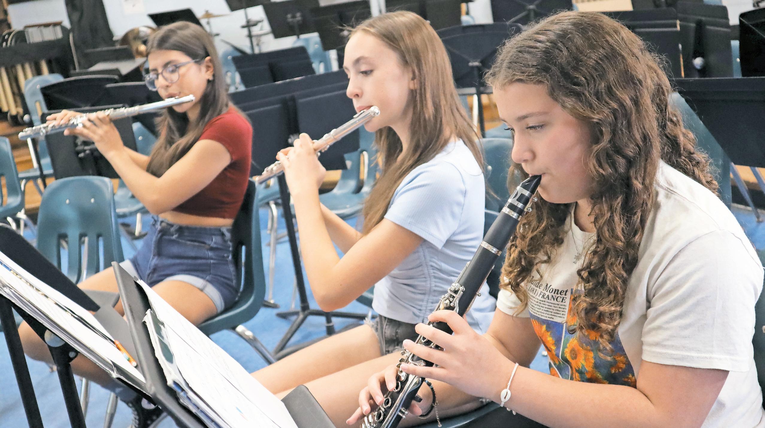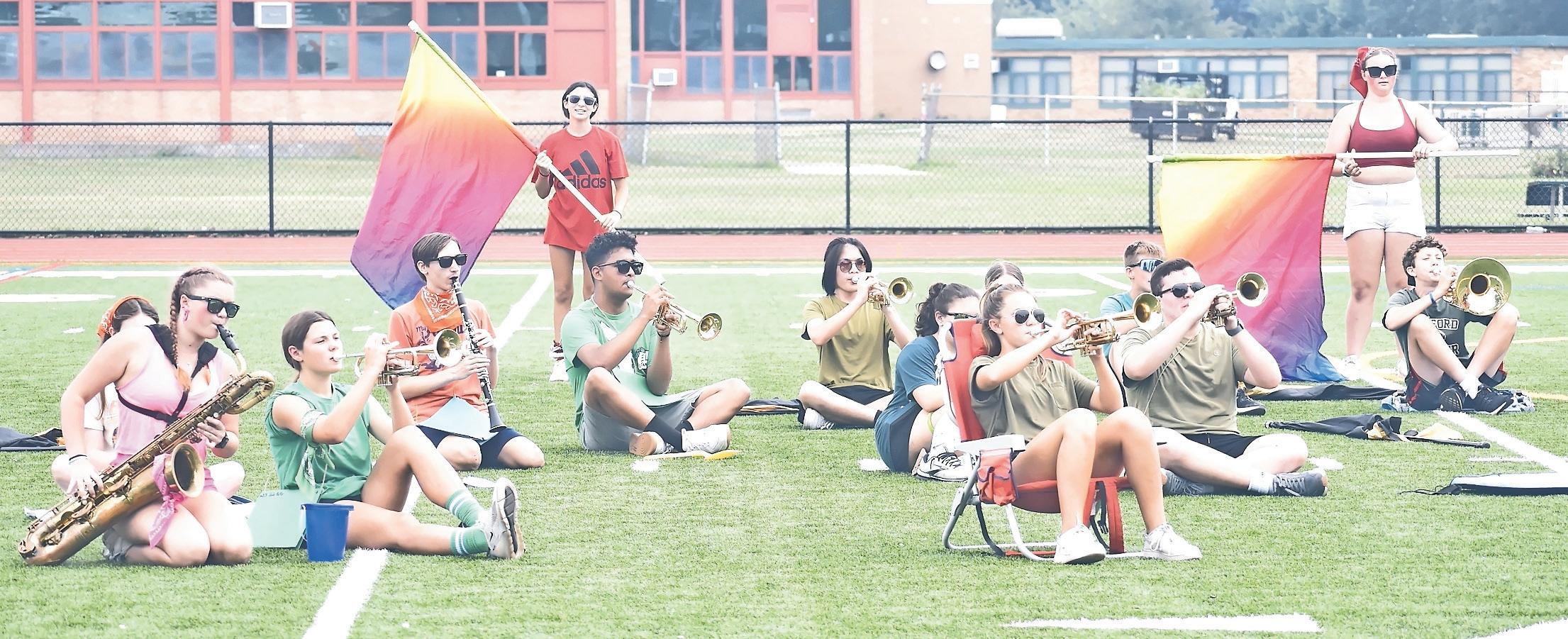 The band and color guard rehearsed for their beach-themed show that will be performed at home football games and the Newsday Marching Band Festival.