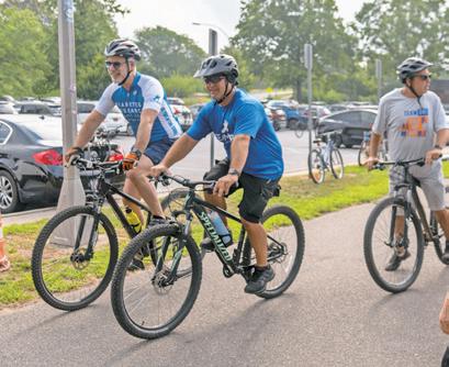 Corey Aronin, committee member for the event, returns from a bike ride. Teams participated in events throughout the day to bring attention to diabetes research.