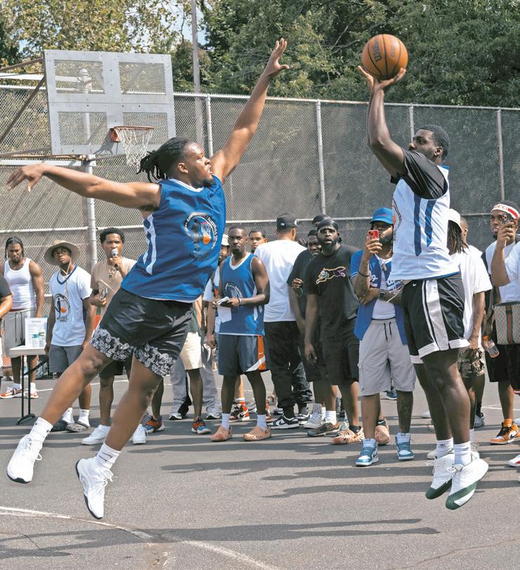 Xavier’s enthusiasm for basketball inspired a 3-on-3 tournament early in the day. Players paid a registration fee that included a meal, and a blue or white jersey emblazoned with “1st Annual 3-on-3 Tournament. Xavier Parris. ‘Mr. Uniondale.’” The competition was organized by Uniondale friends of the Parris brothers, including Jordan Butler, Malcolm Carter, Tyreek Leftenant, Ian Miller, Matthew Cole and Casey Russell.