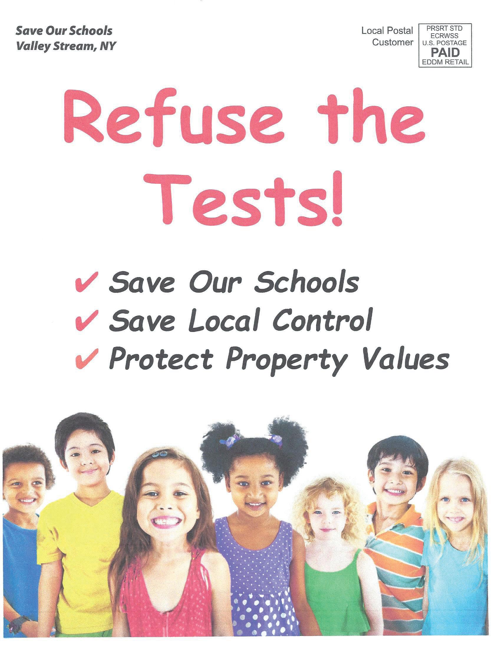 We believe in and trust our highly qualified and dedicated teachers and administrators. We believe in the high quality of teaching and learning that occur in our child’s school. We hope our efforts will be understood in the context in which they are intended: to support the quality of instruction promoted by the school and to advocate for what is best for all children. Our schools will not suffer when these tests are finally gone, they will flourish.