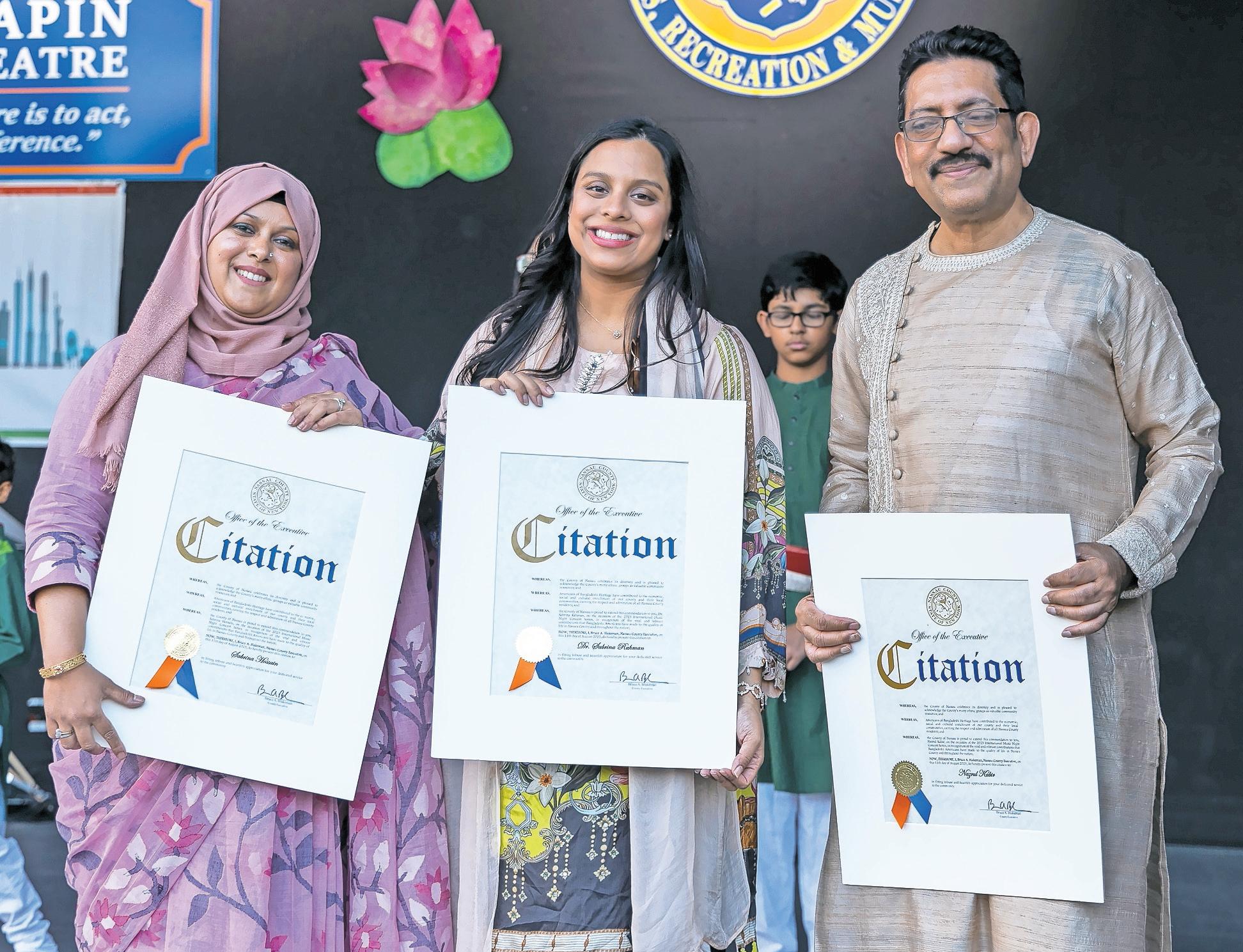 The event is co-organized with the Nassau County Executive Office and the Nassau County Department of Parks, Recreation and Museums. Sabrina Hossain, Sabrina Rahman and Nazrul Kabir were presented citations from the county.