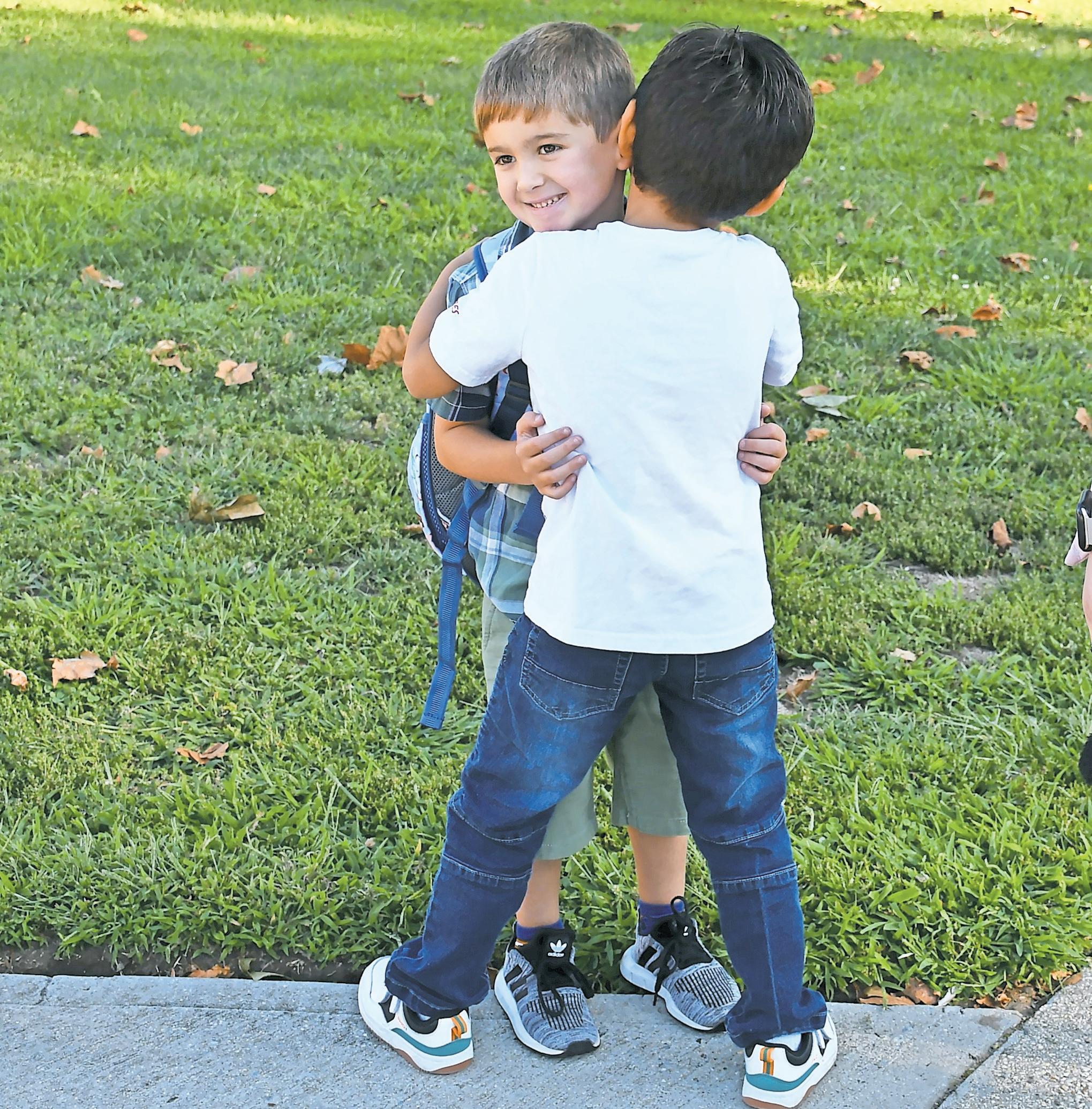 These Forest Road Elementary School students gave each other a big welcome to the new school year on Sept. 1. More photos, page 5.