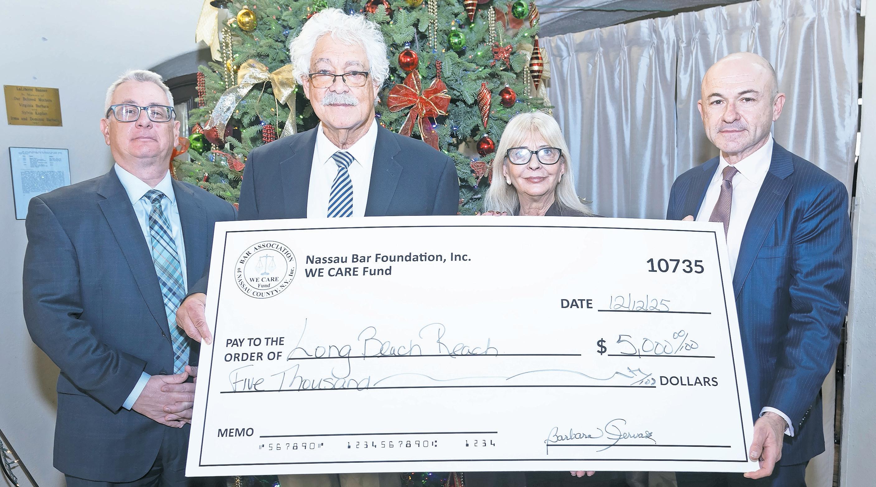 Long Island Reach, the multi-service agency offering counseling, treatment and educational services to families across Nassau County, was awarded a $5,000 grant from the Nassau County Bar Association in Dec. 2025.