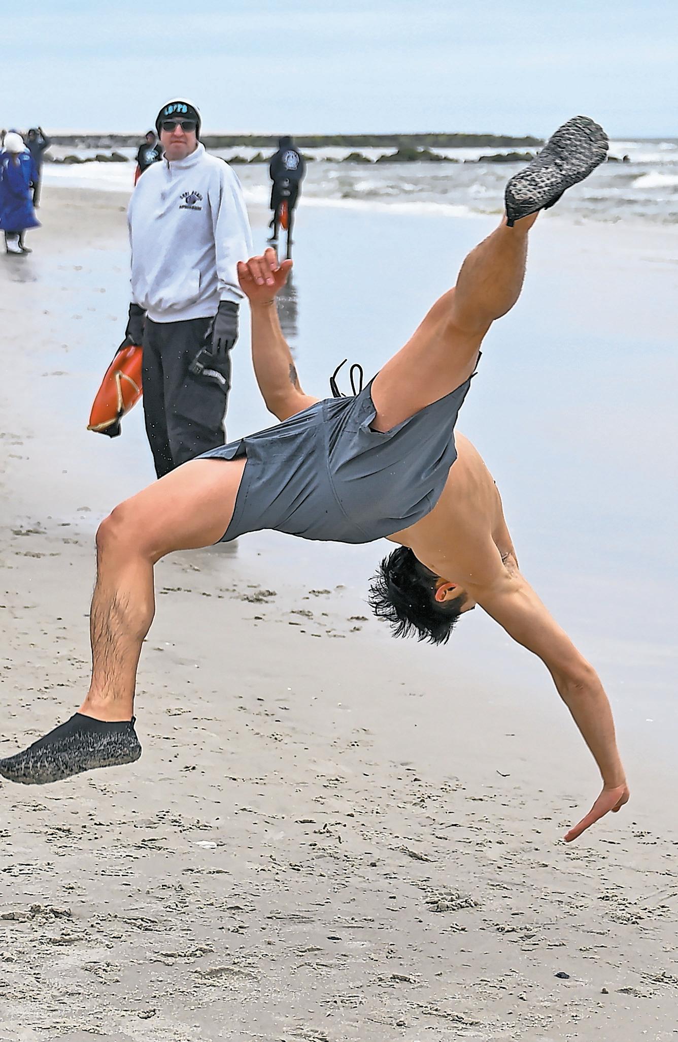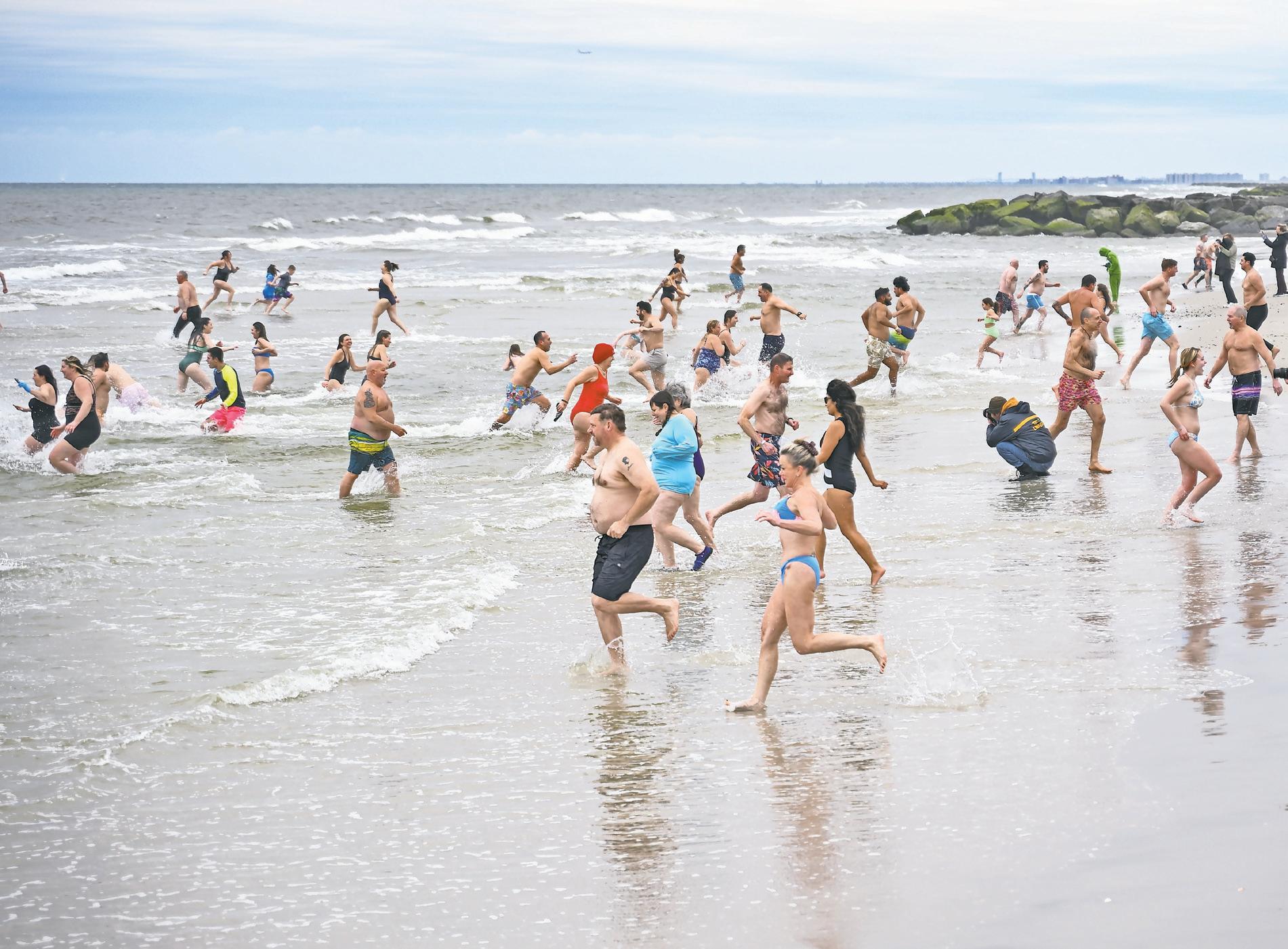 Undeterred by weather that was still far more winter than spring, the ocean-jumpers braved water temperatures in the mid-30s, and land temperatures only slightly warmer. The plunge helped the Polar Bears in their continued drive to raise money for the MakeA-Wish Foundation.