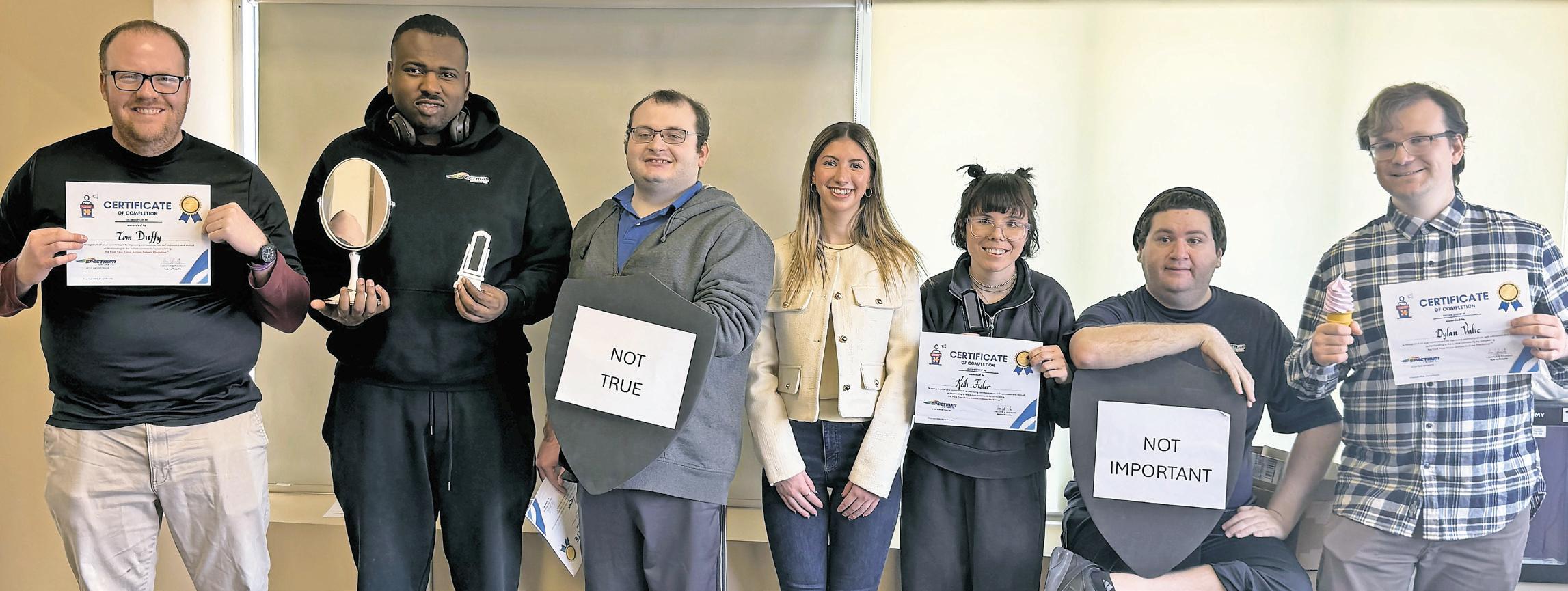 During the hourlong session, 12 Spectrum Designs employees and staff members, including Stein, took part in seven interactive exercises with a group of autistic people from East Rockaway, Port Washington, West Hempstead and Kings Park. The sessions included Lights Out Listening, a technique to manage sensory overload and improve focus, as well as activities to reflect others’ perspectives and build effective rebuttal skills. Participants who completed the session received certificates. One exercise, Stein recalled, helped participants understand