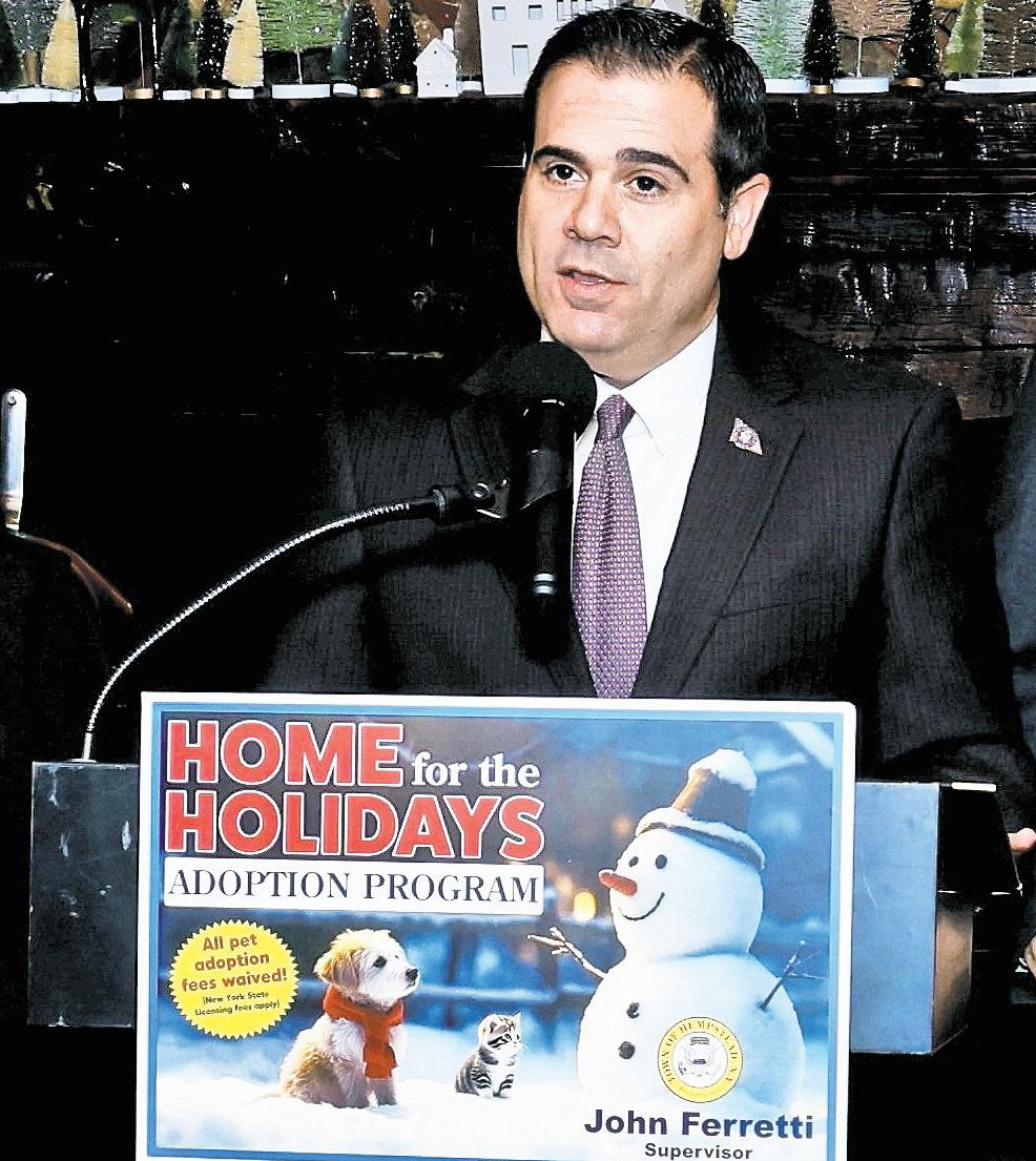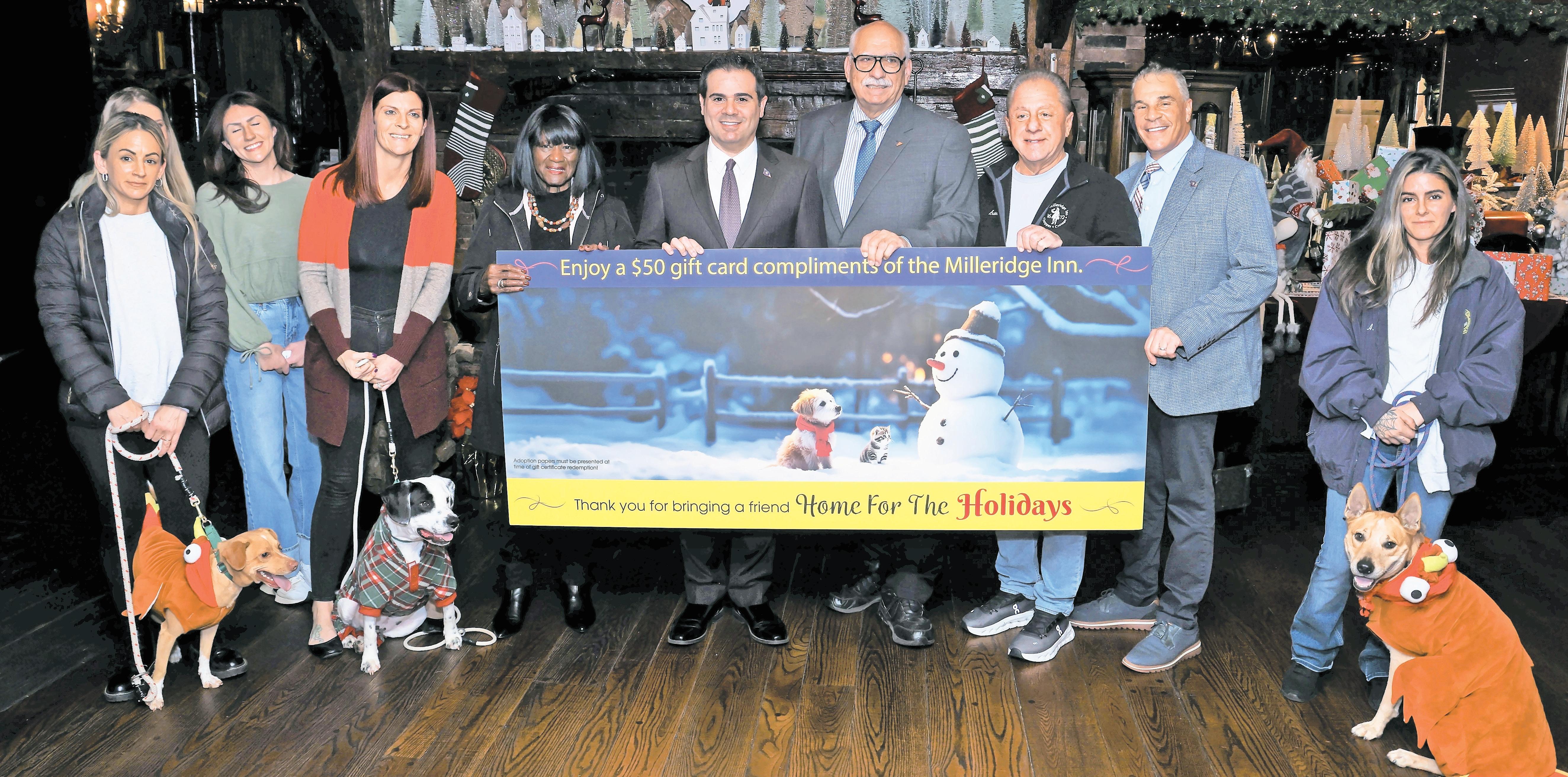 “We are thankful to the Milleridge Inn for supporting this adoption initiative,” Town Supervisor John Ferretti said at a festive launch event on Nov. 20. “Few things are more uplifting than the joy of adopting a pet, and I encourage families to take advantage of this great opportunity — and then celebrate the season with a holiday meal at the festive Milleridge Inn.”