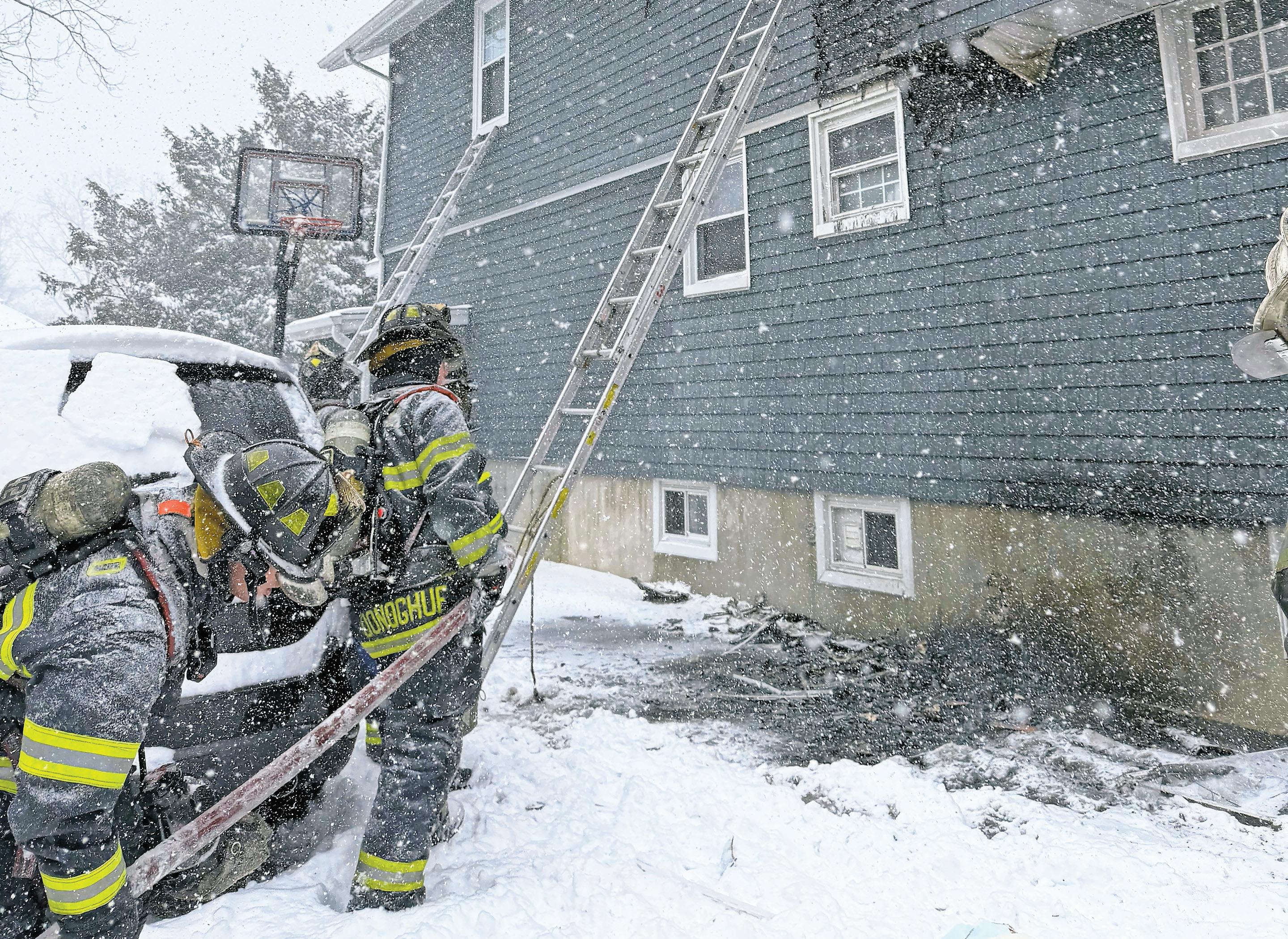 Fire departments from Hewlett, LawrenceCedarhurst, Lynbrook, Valley Stream and other communities joined forces to extinguish a latemorning fire on the second floor of a house on Sunset Avenue, in Lynbrook, on Sunday. Hewlett firefighters initially responded to the call at 11:29 a.m. (Though the house is in Lynbrook, it is in the Hewlett Fire District.) First responders were on the scene for 90 minutes.