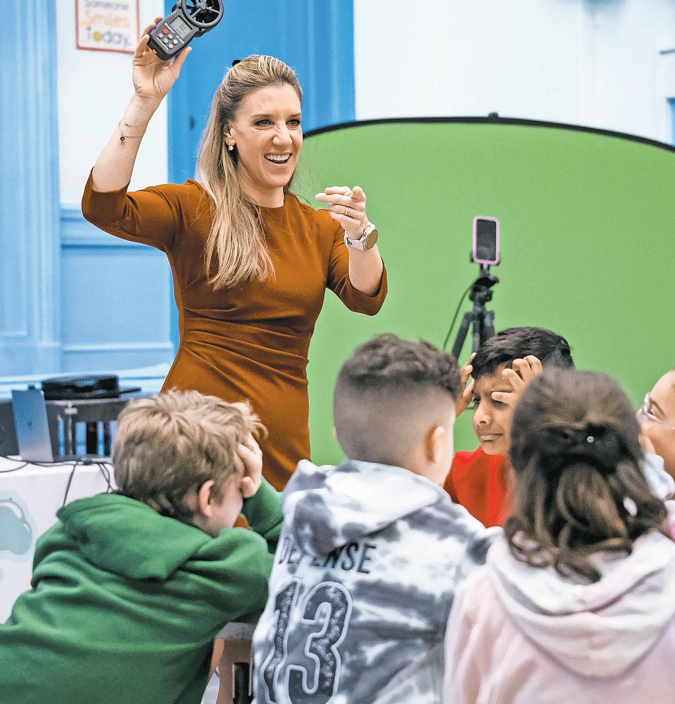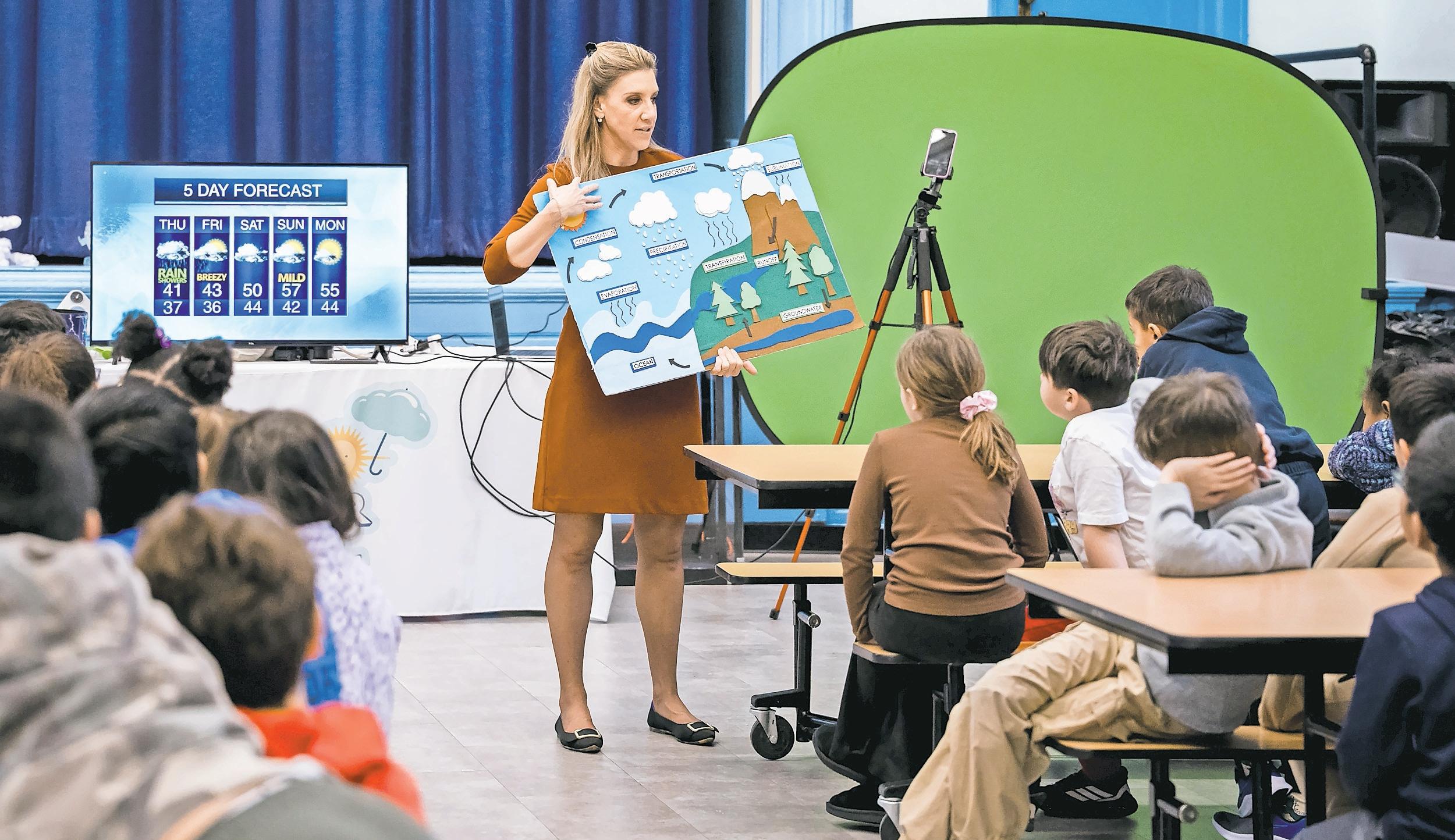 Centre Avenue Elementary School welcomed a special guest on March 5 when meteorologist Samantha Augeri brought her popular educational program, Sam’s Weather School, to campus.
