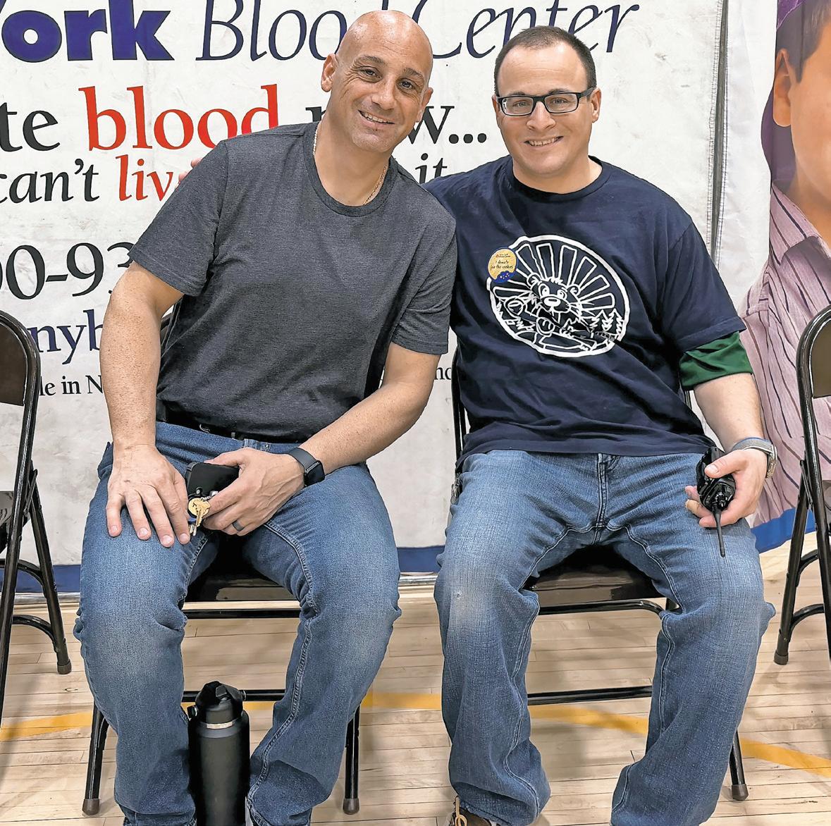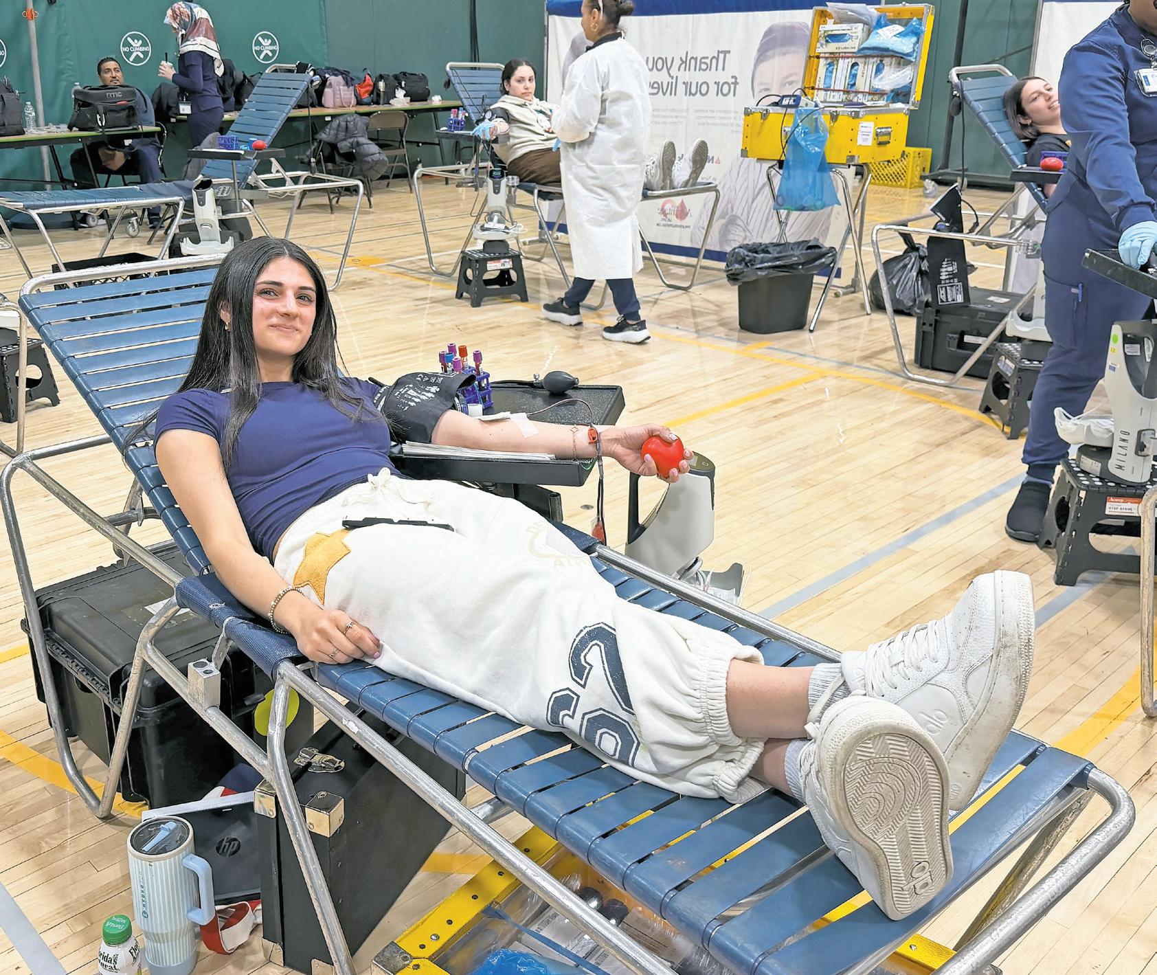 Lynbrook High School senior Addison Difiore, secretary of the Key Club, above, kicked back while giving blood at the school’s final drive of the year on April 1. Donors Aidan Pearsall president of the club, near right, and business teacher Benedict Tieniber, the Key Club adviser, helped make the New York Blood Center effort a success. Story, more photos, Page 7.