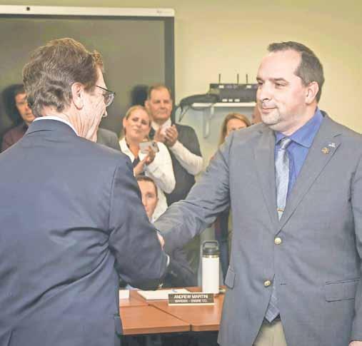 Superintendent James DeTommaso, right, recognized the outstanding leadership of Gary Gregory, the district’s Athletic Director, recommending him for tenure at the East Rockaway Board of Education meeting on April 23.