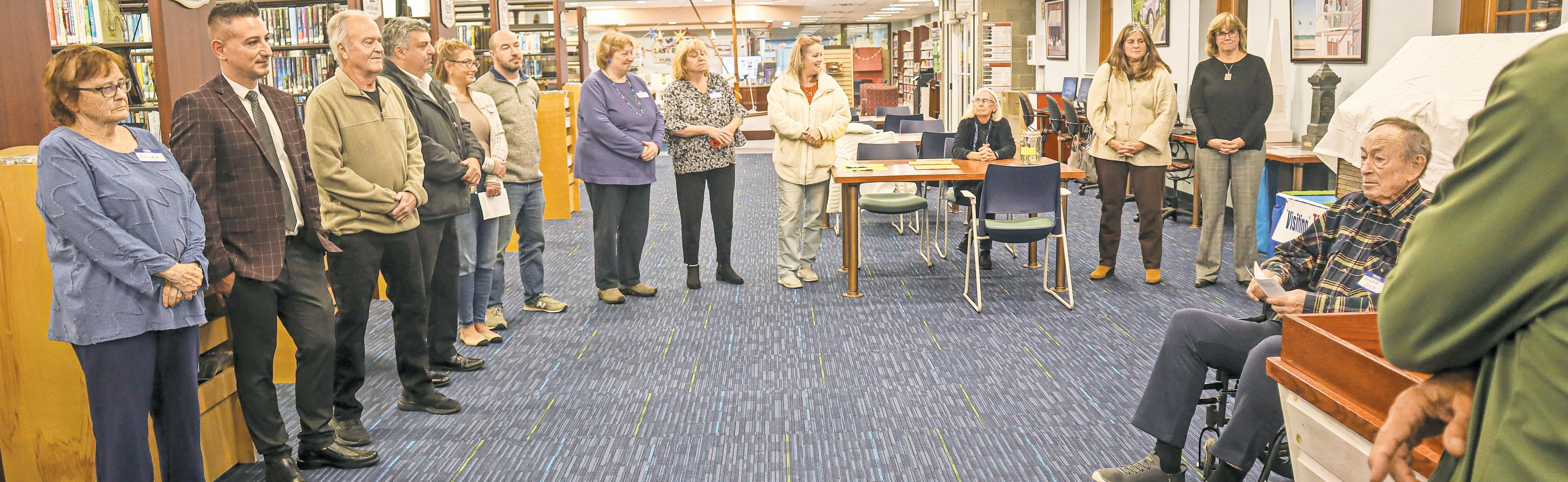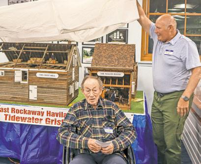 A crowd viewed the miniature Old Grist Mill replica at the East Rockaway Public Library, part of an exhibit by the Historical Society of Lynbrook and East Rockaway.