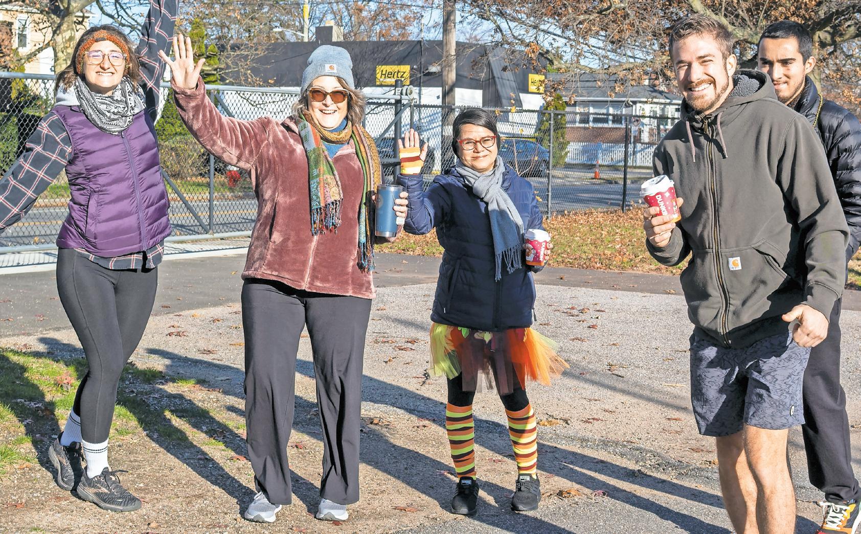 More than 50 Lynbrook residents gathered in Greis Park on Thanksgiving morning to take part in the annual Turkey Trot, including Jackie Zenker, right, and her daughter, Avery, 6. Story, more photos, Page 6.