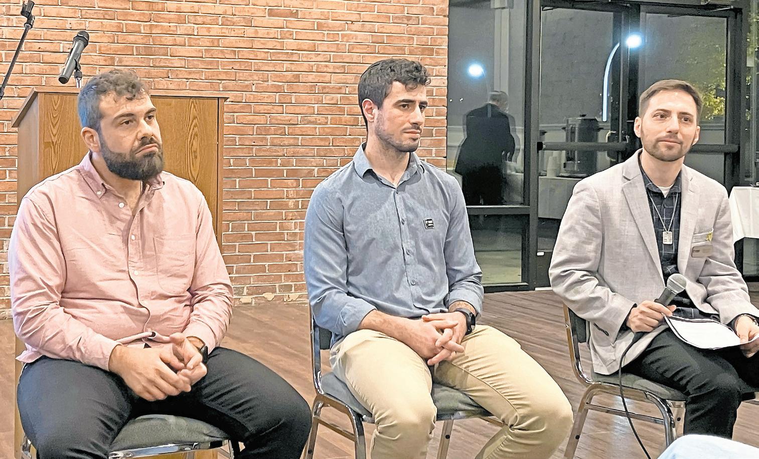 Madeline Pearson, left, Robert Sympson, and James Pearson of the Historical Society of Lynbrook and East Rockaway helped host the miniature replica of the Old
