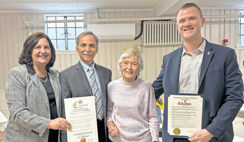 Friends and parishioners gathered at the Community Presbyterian Church of Malverne on March 8, to celebrate the 100th birthday of Florence Cocchi, whose late husband, Louis, was a village mayor.