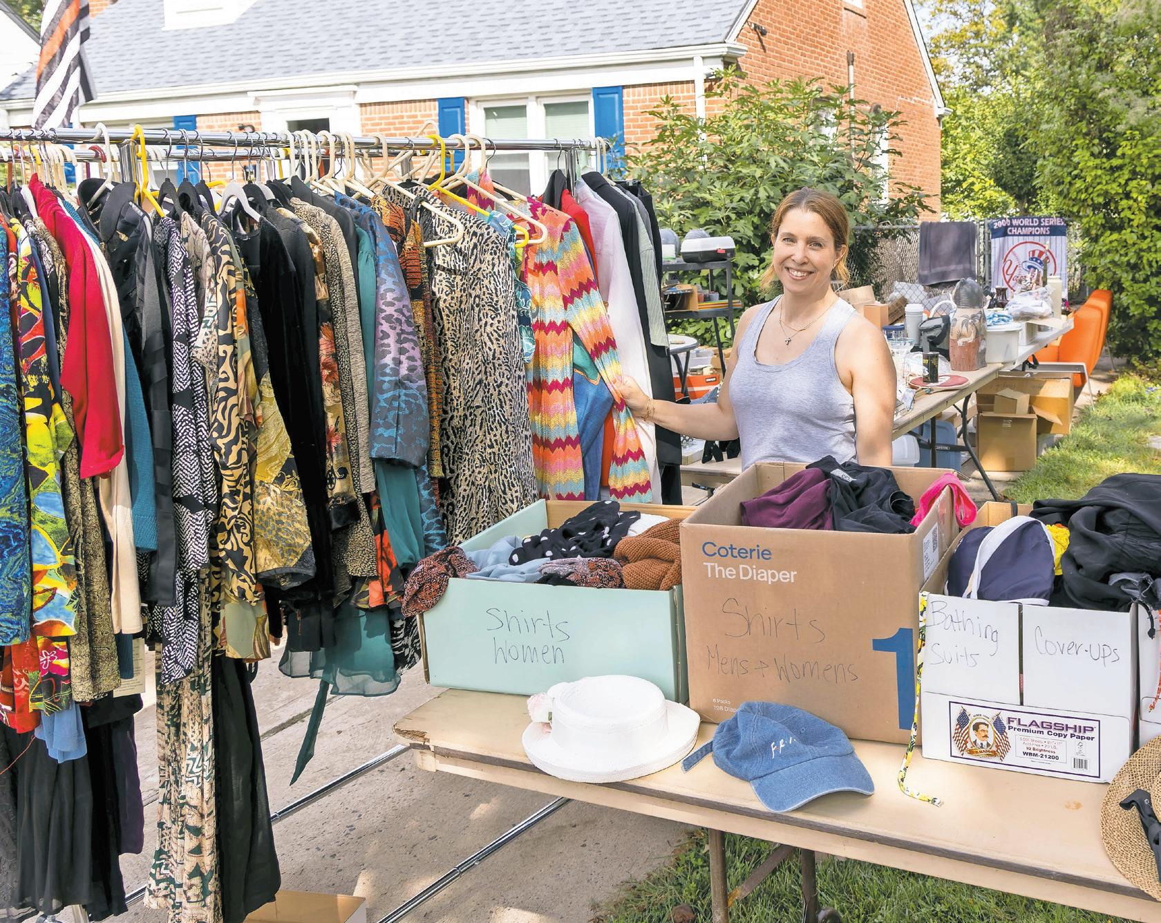 Alexa Salamone of Valley Stream helps organize clothes for sale at her mother-in-law’s house during Malverne’s village-wide garage sale on Saturday. See story, more photos, Page 3.