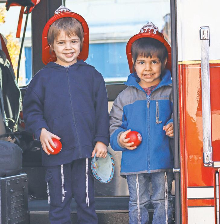 Yoel, 4, left, and Eliyahu Mossaiov, 3, of West Hempstead explored the fire trucks during the open house.