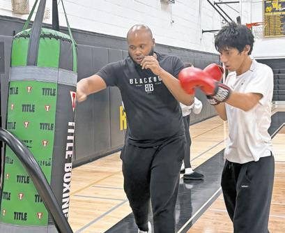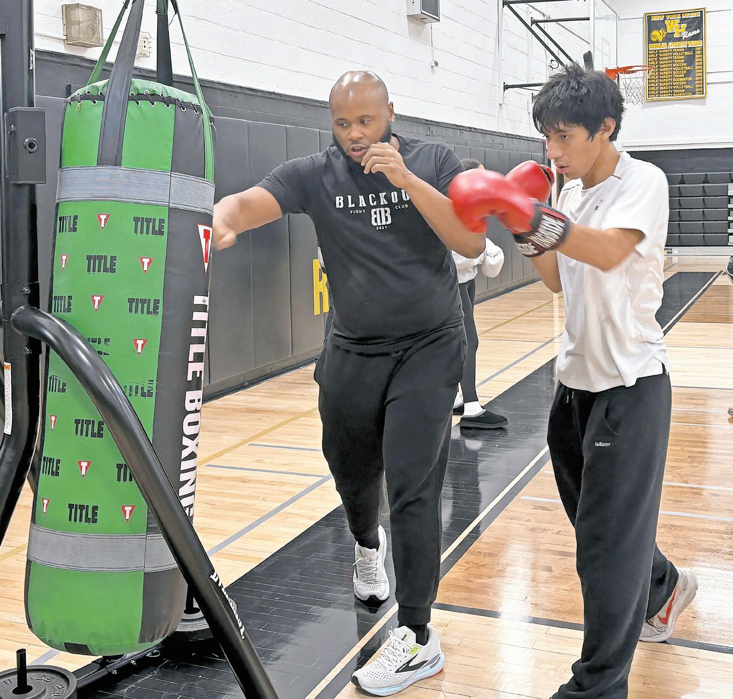 Fredi Castro, 18, a senior at West Hempstead Secondary School, learns boxing techniques from Steve Melbourne, a coach with West Hempstead’s Blackout Boxing Club.