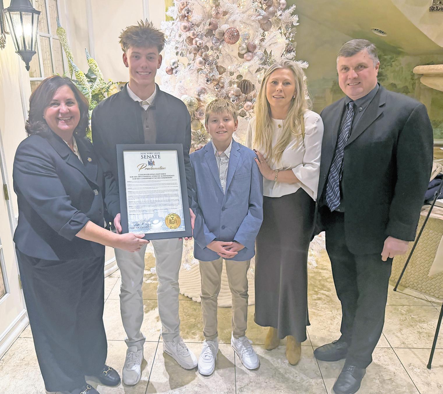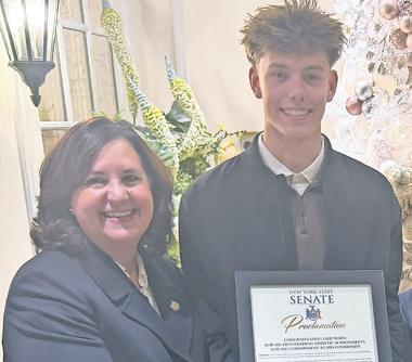 State Senator Patricia CanzoneriFitzpatrick recognized Filip Beben, a senior on the Malverne/East Rockaway varsity soccer team, for his outstanding leadership at the 2025 Nassau County Soccer All-Scholastic Dinner.