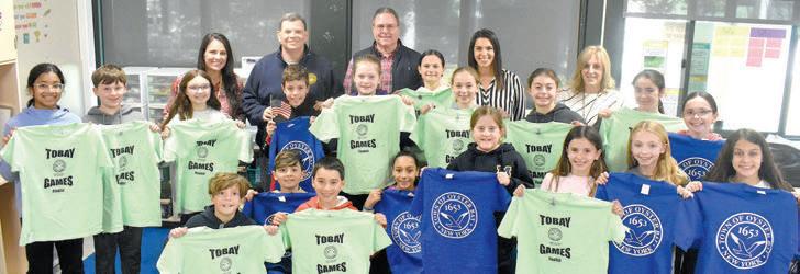 Left: Student council members got T-shirts from Town of Oyster Bay Parks Commissioner Joseph Pinto and Deputy Commissioner Gregory Mangino.