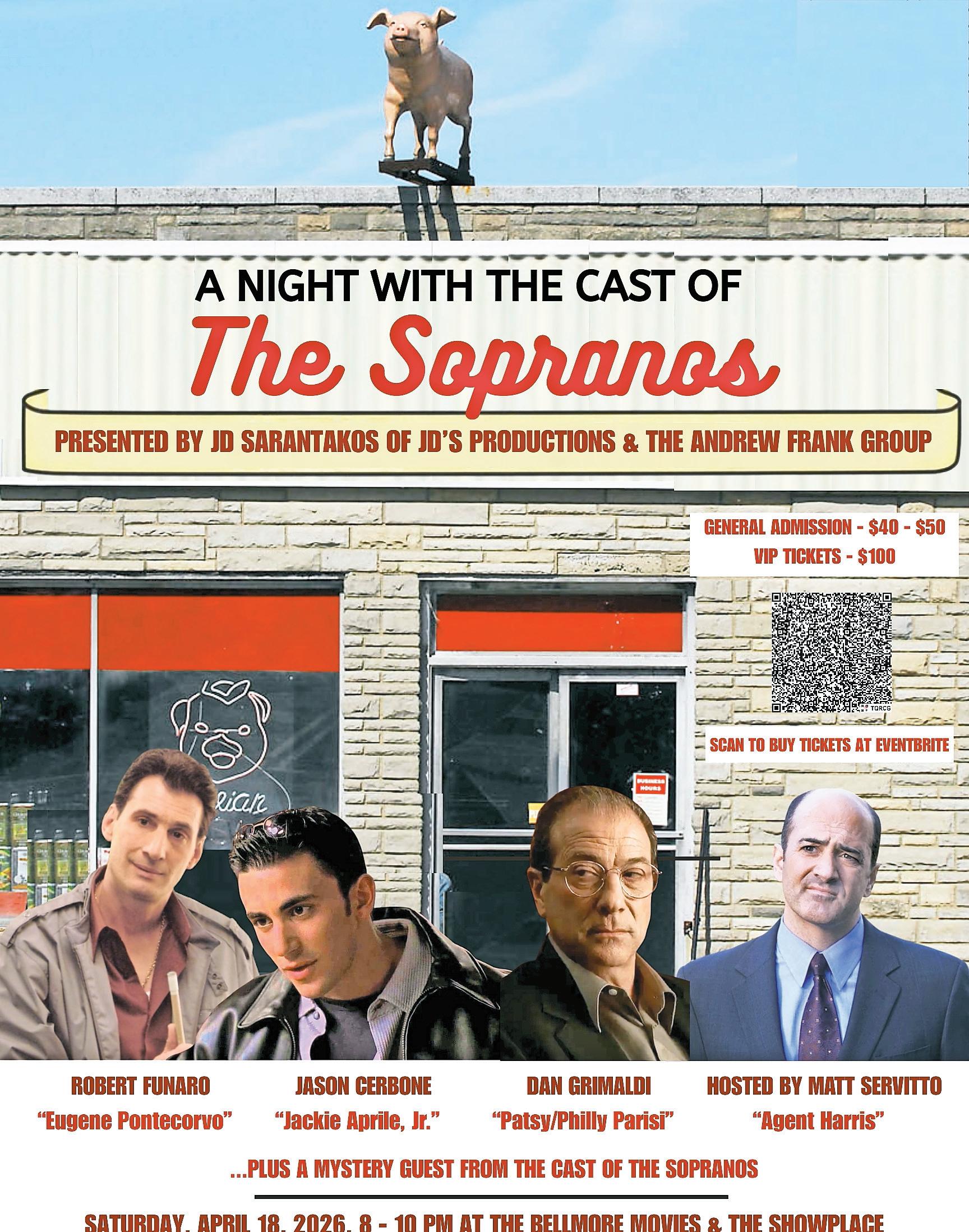 In November, hundreds of fans flocked to Bellmore Movies and the Showplace to spend an evening with four actors from the primetime drama “The Sopranos,” who shared details about the show. Locals who missed the opportunity will get a second chance to catch up on all things “Sopranos” on April 18, at 10 p.m.