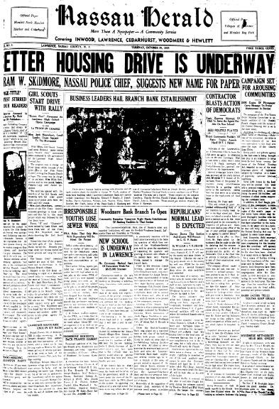 Why was this small weekly, serving just a sliver of a large county, named the Nassau Herald? Not to suggest grand ambitions across Nassau County, but simply to distinguish it from its sibling paper, the Rockaway Journal, which covered the neighboring Rockaway peninsula in Queens.
