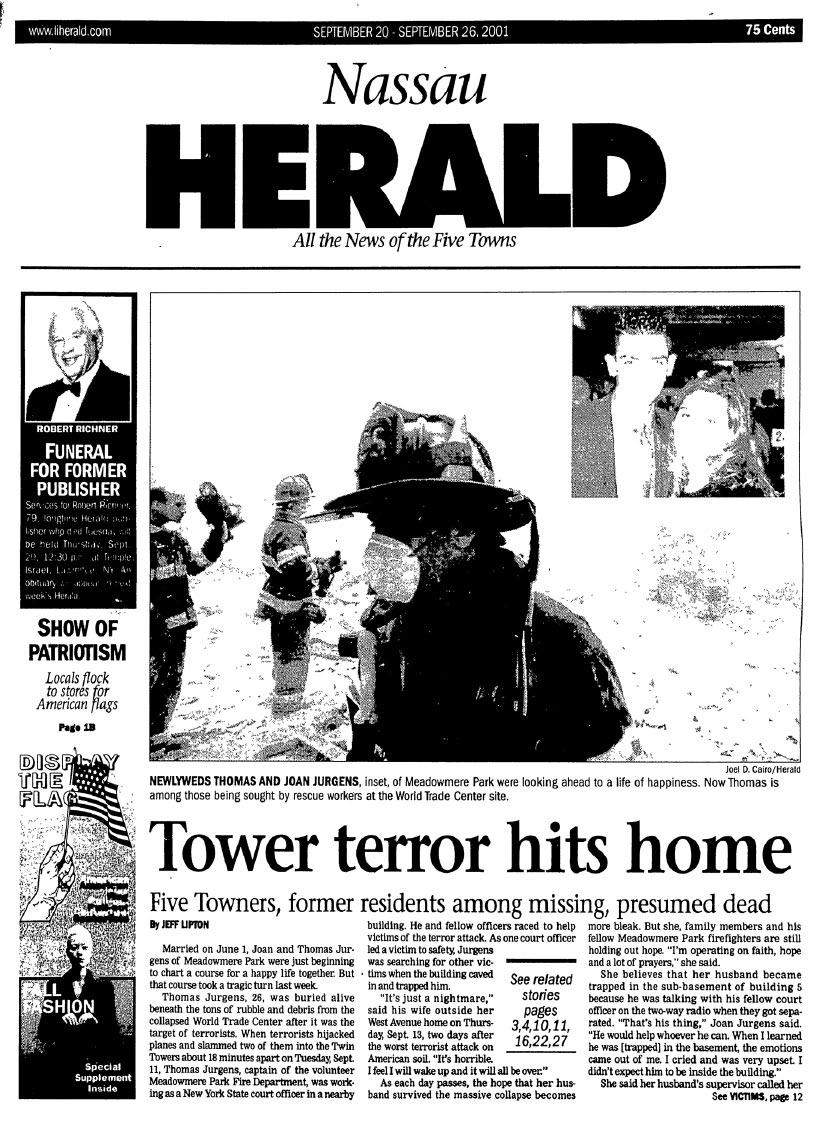 When major events unfold at our doorstep, the Herald is there. After 9/11, our reporters worked tirelessly to document every Five Towner lost in the attacks. For months, we covered funerals and memorials, telling the stories of lives cut short and the legacies they left behind. Each Sept. 11, we continue to print their names and photographs — and we will do so again this year on the 25th anniversary.
