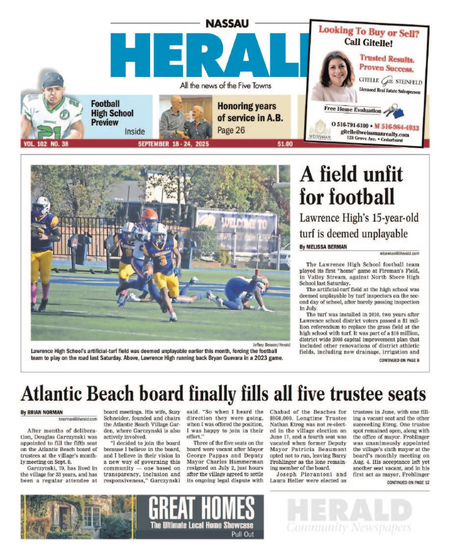 On behalf of everyone at Five Towns Premier, we extend our heartfelt congratulations to the Nassau Herald on the extraordinary milestone of 100 years of continuous publication. Reaching a centennial anniversary is a remarkable achievement and a testament to your enduring commitment to excellence in journalism and to the people and communities of Nassau County you have faithfully served for generations.