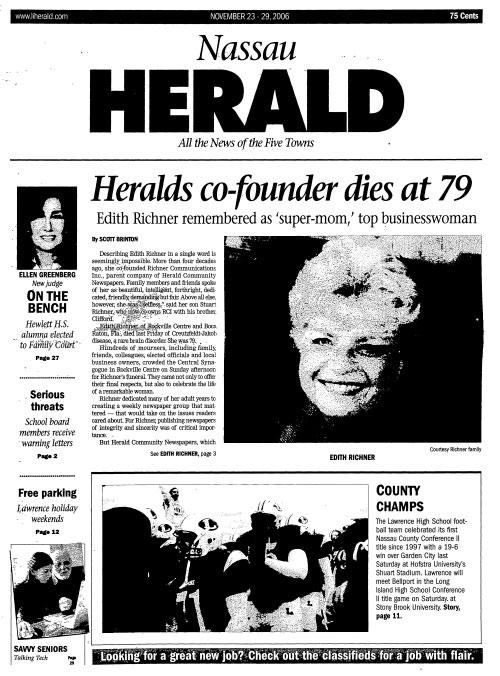 ur parents, Robert and Edith Richner, bought the Herald in June 1964. Not long after, the paper published a special 40th anniversary edition. We were in grade school and don’t remember much about what was in that issue. But we vividly remember how they made it look special.