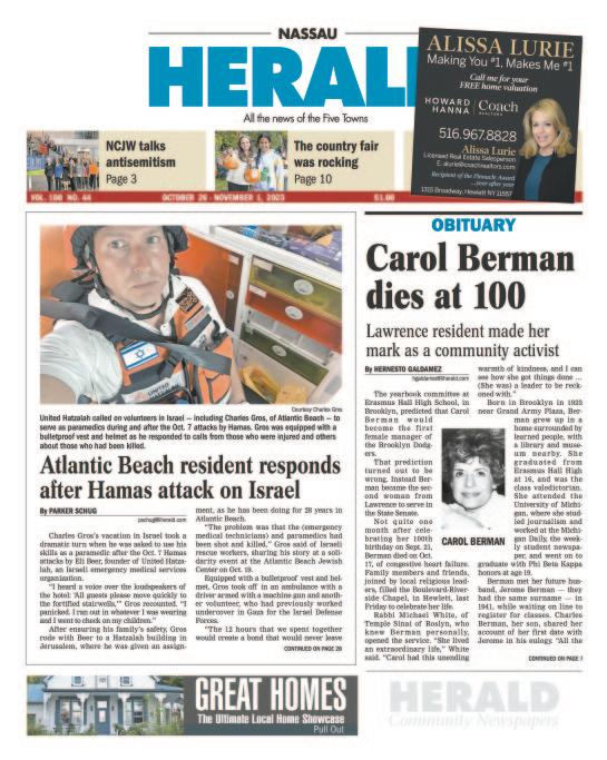 As the Center for Jewish Life in Hewlett, we don’t see the Nassau Herald as merely a newspaper. We see it as a partner, a neighbor and truly a part of our community’s heartbeat. For so many years, the Nassau Herald has not simply reported on events, it has helped shape the way our community experiences, remembers and celebrates them.