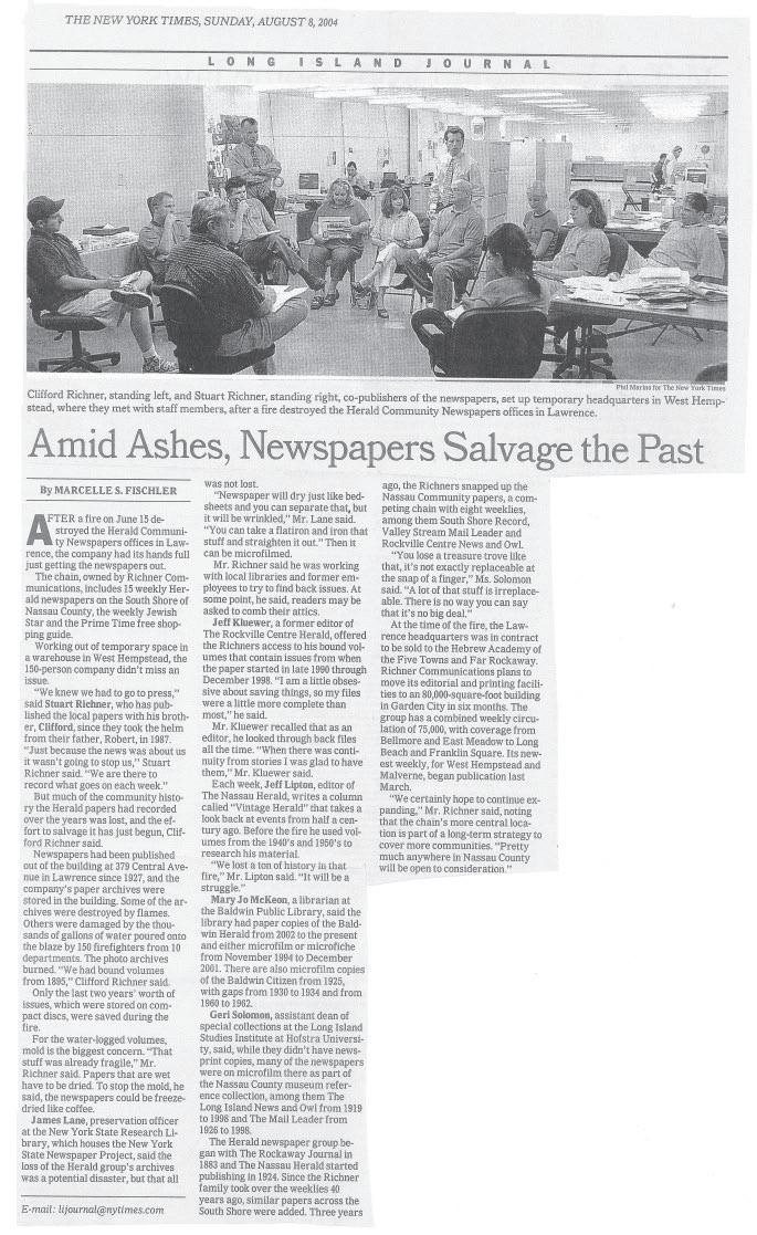 The building was heavily damaged, forcing the publication to relocate its operations, initially to West Hempstead. Richner Communications, which publishes the Herald newspapers, is now headquartered in Garden City.