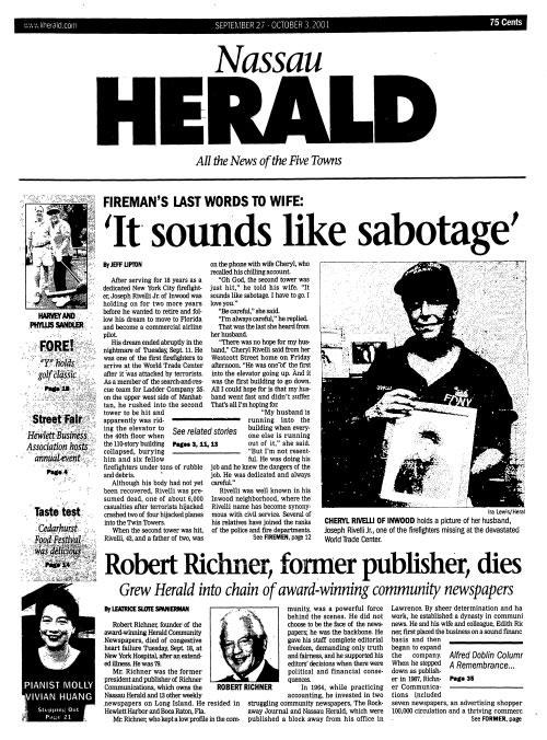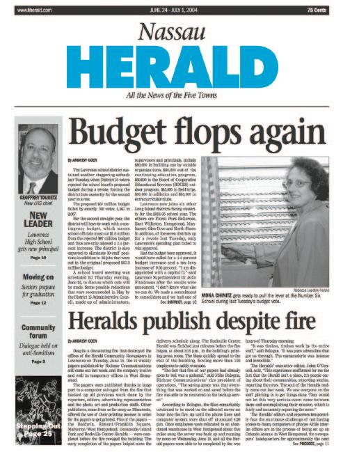 The building was heavily damaged, forcing the publication to relocate its operations, initially to West Hempstead. Richner Communications, which publishes the Herald newspapers, is now headquartered in Garden City.
