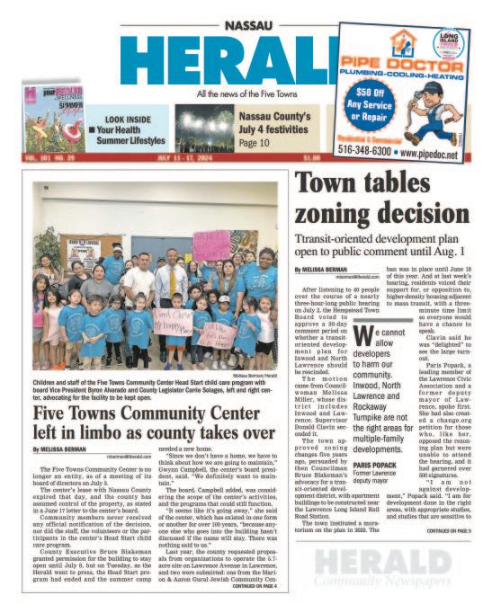 As a longtime resident of the Five Towns — first in Lawrence for nearly a decade and now in Cedarhurst since 2017 — I want to express my heartfelt appreciation for how the Nassau Herald has chronicled my journey over the years.