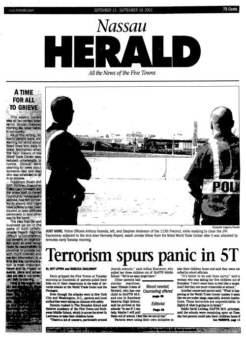When major events unfold at our doorstep, the Herald is there. After 9/11, our reporters worked tirelessly to document every Five Towner lost in the attacks. For months, we covered funerals and memorials, telling the stories of lives cut short and the legacies they left behind. Each Sept. 11, we continue to print their names and photographs — and we will do so again this year on the 25th anniversary.