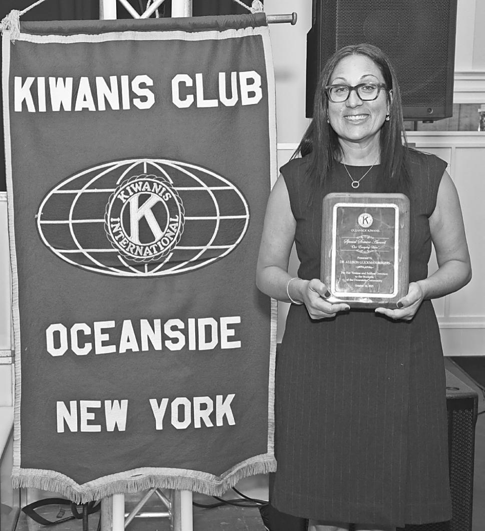 The Kiwanis Club of Oceanside celebrated its 80th anniversary on Oct. 16 with an evening of music, food and recognition of two community leaders, Michael Puma and Allison Glickman Rogers.