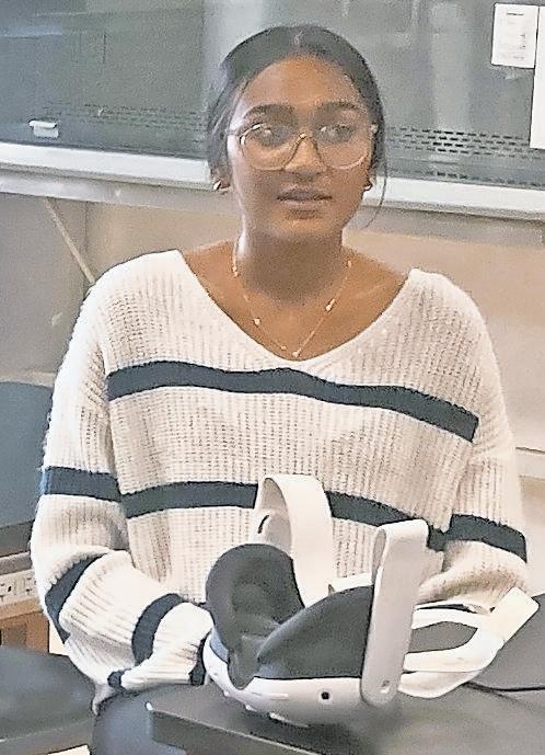 Oceanside High School junior Kitika Kumar has created a 3D virtual reality simulation of driving through a snow squall, demonstrating how to use the potentially life-saving technology during her science class on Oct. 15.