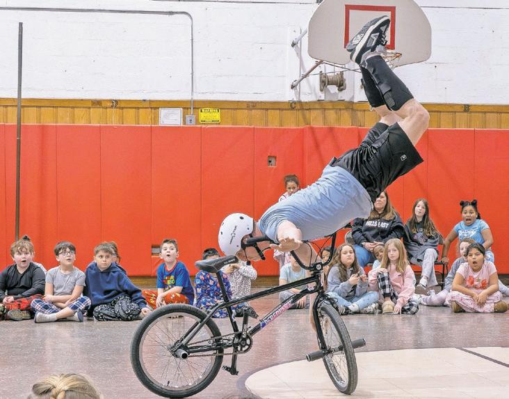 Students at School No. 5 got an energetic lesson in perseverance and kindness when BMX champion and motivational speaker Chris Poulos visited for a special assembly on March 13.