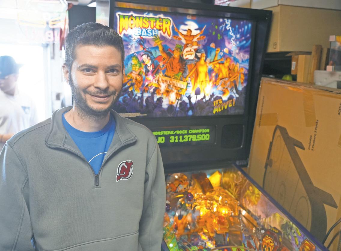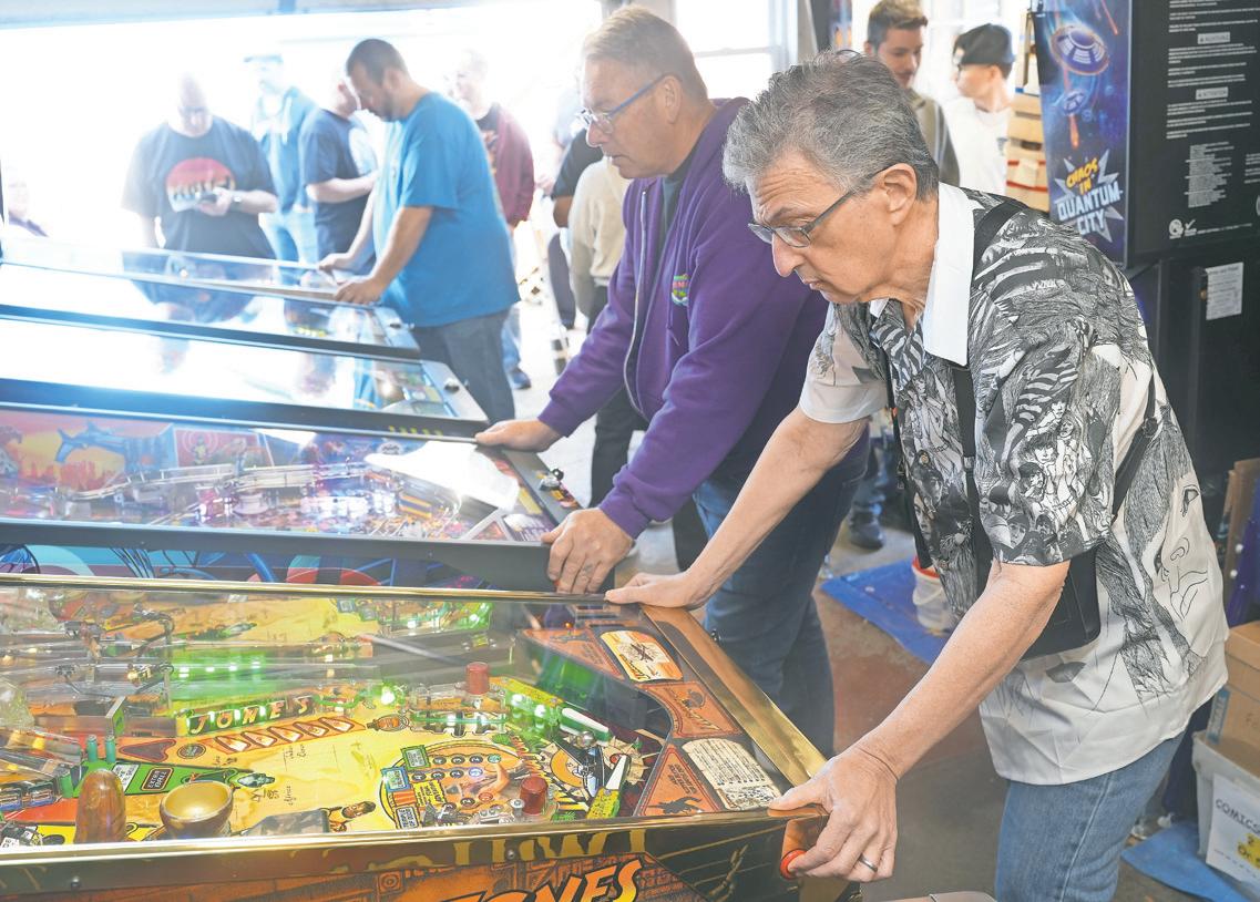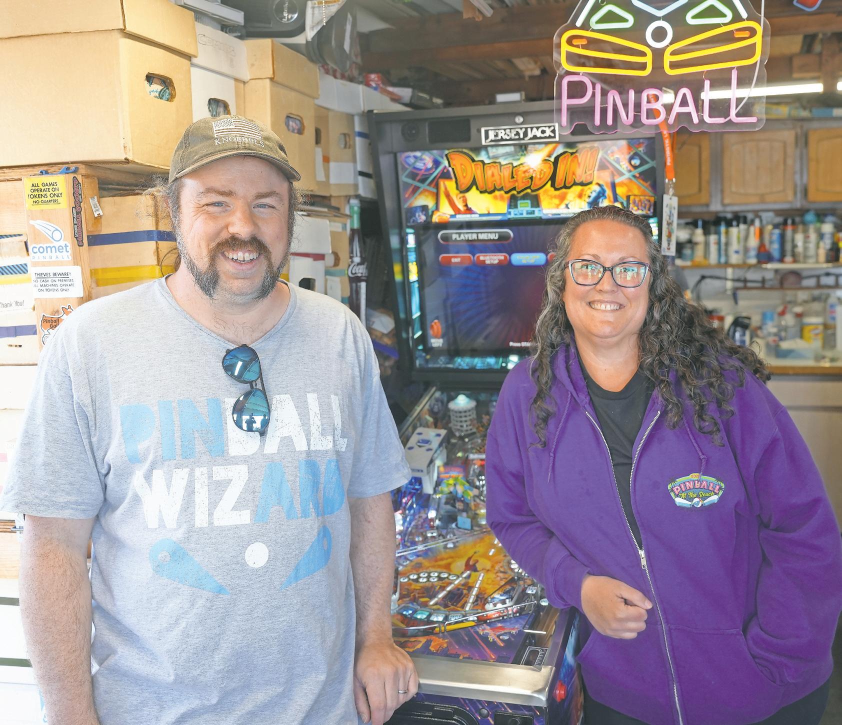Tim Baker/Herald Longtime friends Stephen Oswald II and Linda Cole organized and ran the first Long Island Pinball Rumble at the Oswalds’ Oceanside home last Saturday.