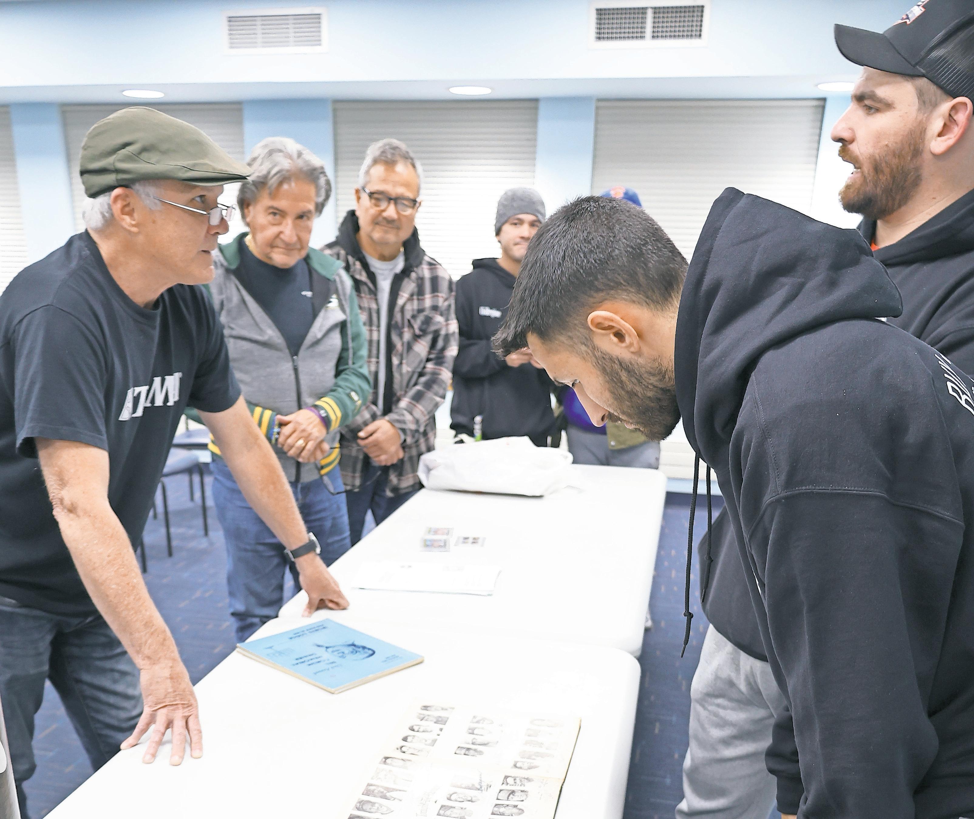 Taylor-Corbett, who grew up in Rockville Centre and is of Black, Blackfeet, Irish and Scandinavian descent, opened the workshop by sharing how a formative trip to the Blackfeet reservation in Montana at age 15 sparked a decadeslong connection to his roots. He told students that understanding his identity continues to guide his artistic work, and that the Blackfeet worldview holds lessons that reach far beyond tribal culture.