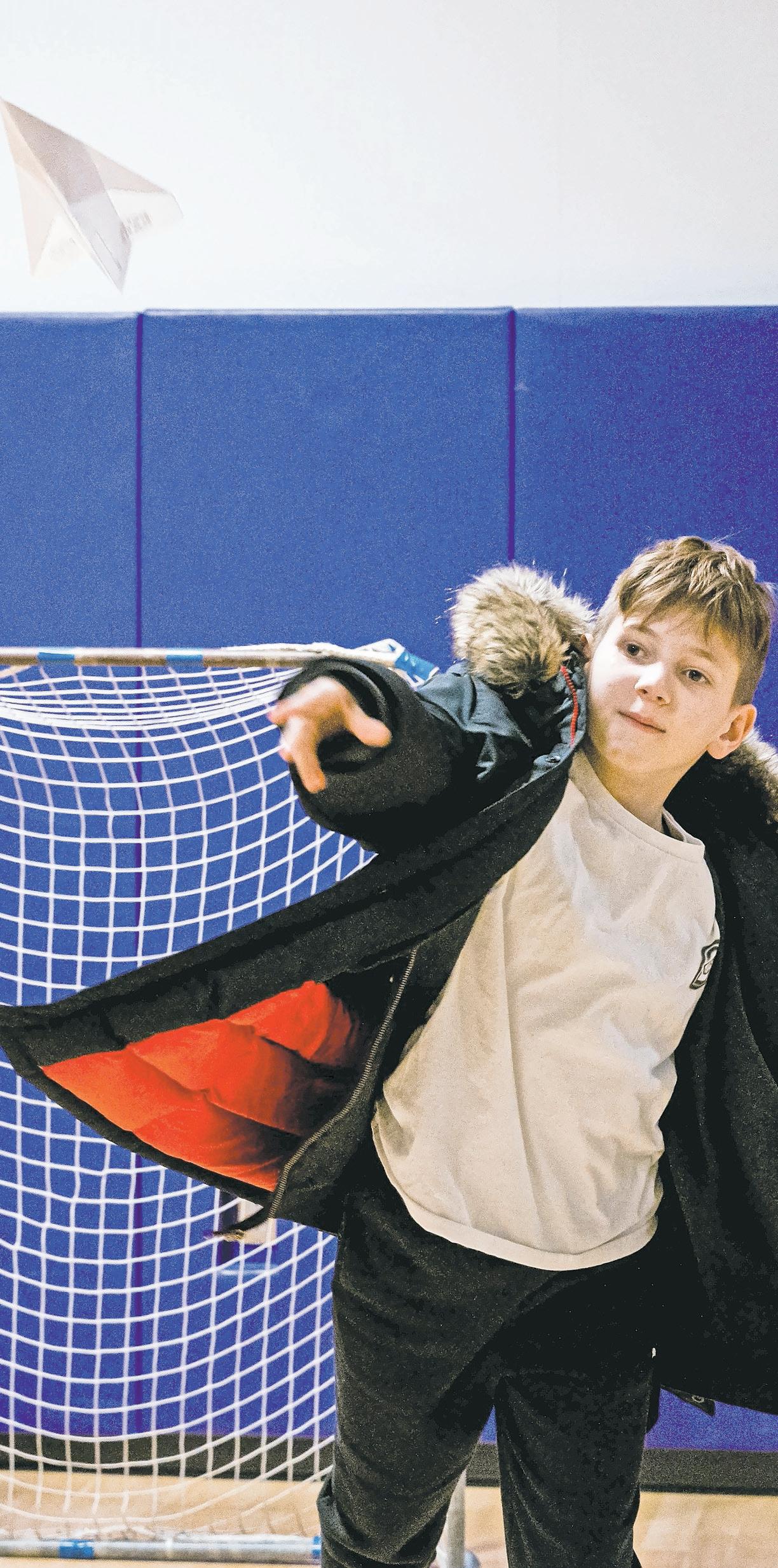 In the athletic complex, students explored an aerodynamics station where they designed and tested paper airplanes while learning how air movement affects objects in motion. Additional stations offered opportunities to investigate air pressure principles through balloon experiments and other interactive science activities.