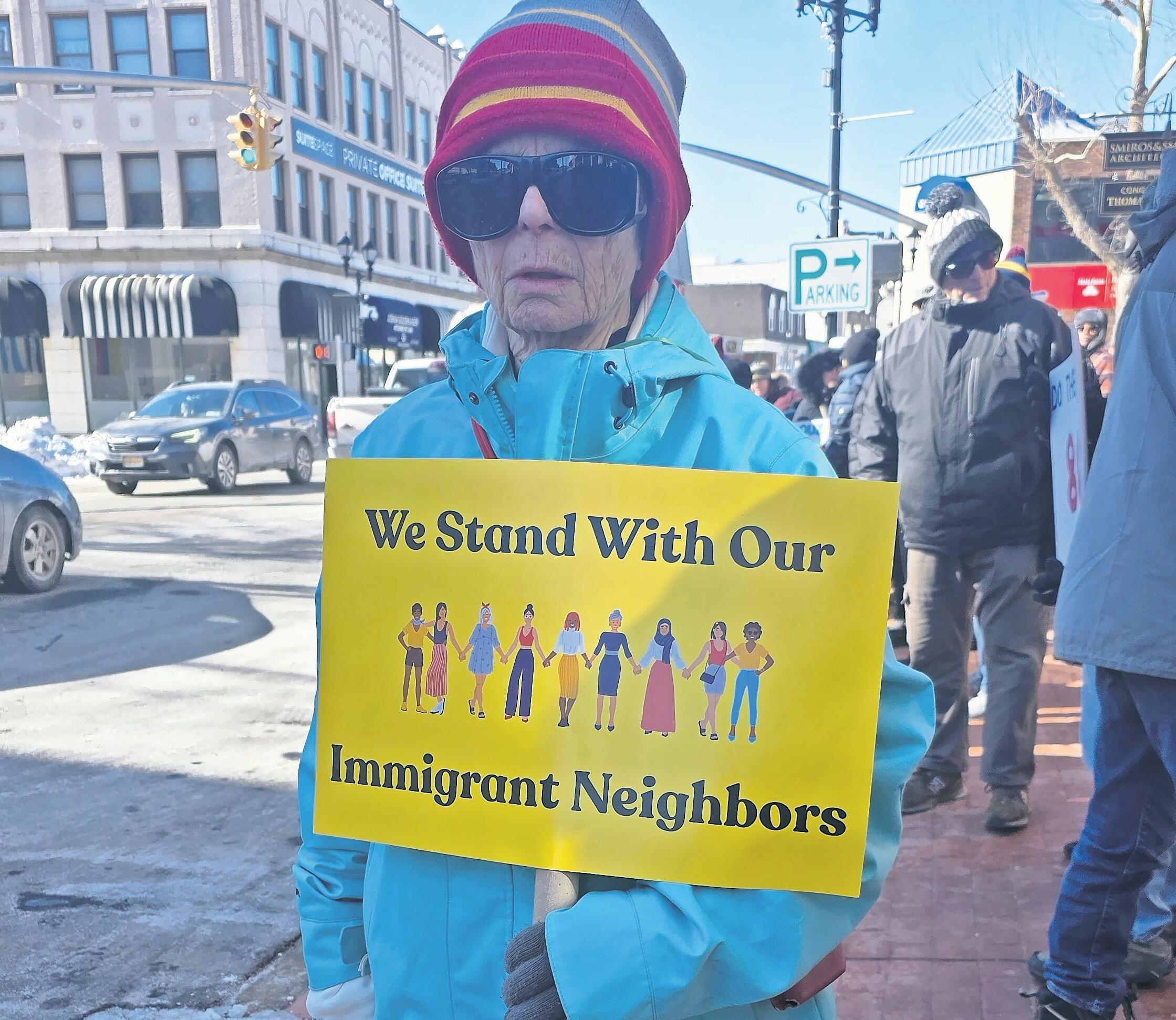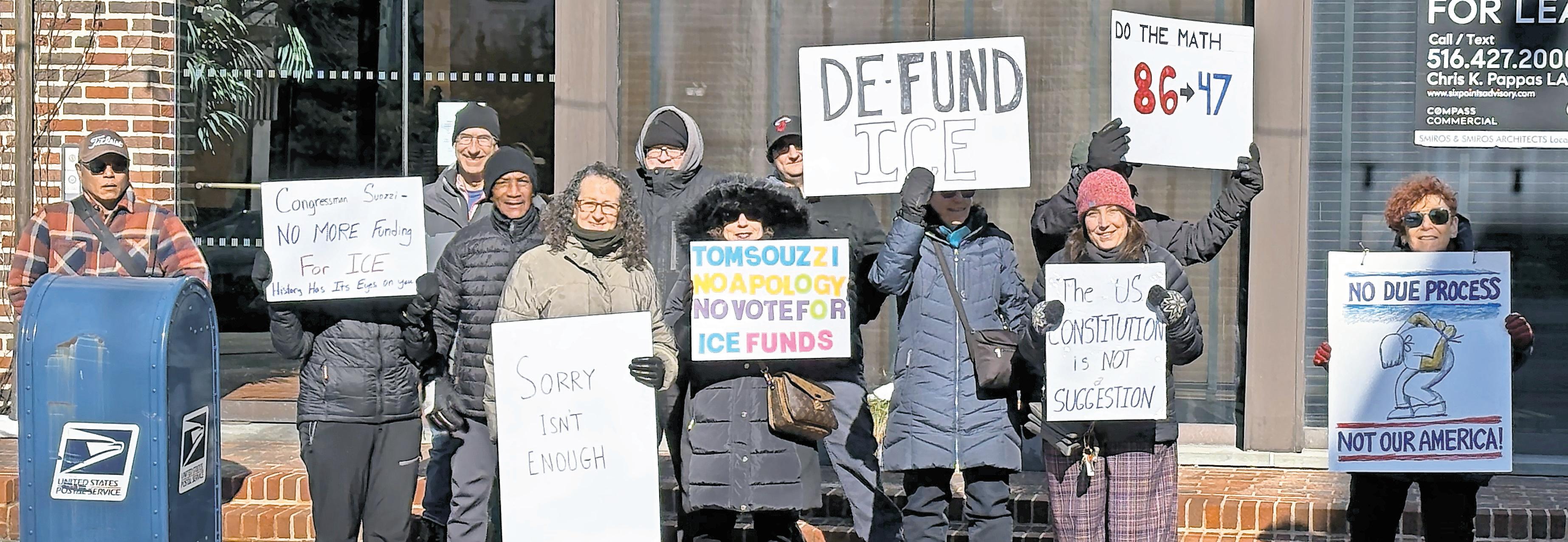 An employee of Suozzi’s office met with protesters during Monday’s rally, distributing comment sheets on which residents could write concerns and complaints for the congressman to review. In a follow-up statement after the protest, Suozzi condemned recent immigration enforcement tactics while reiterating support for border security.