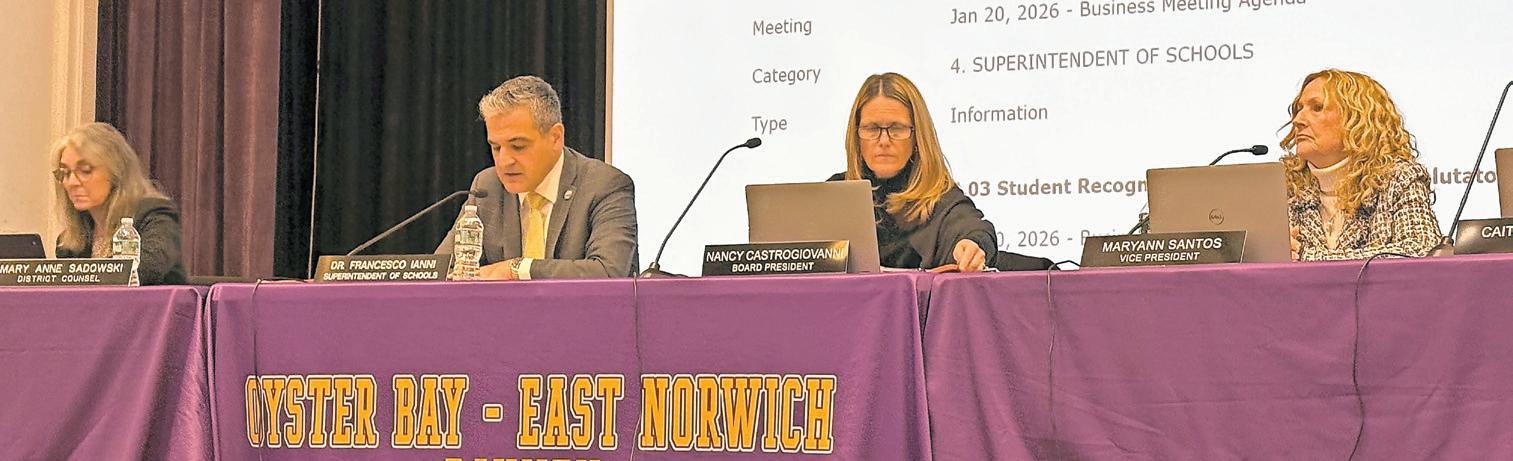 Devra Small, principal of Theodore Roosevelt Elementary School, and Anastasia Smith, principal of James H. Vernon School, presented an overview of instructional programs, student achievement and facilities improvements to the Oyster BayEast Norwich Central School District Board of Education on Tuesday, highlighting districtwide efforts to align teaching with research-based best practices.