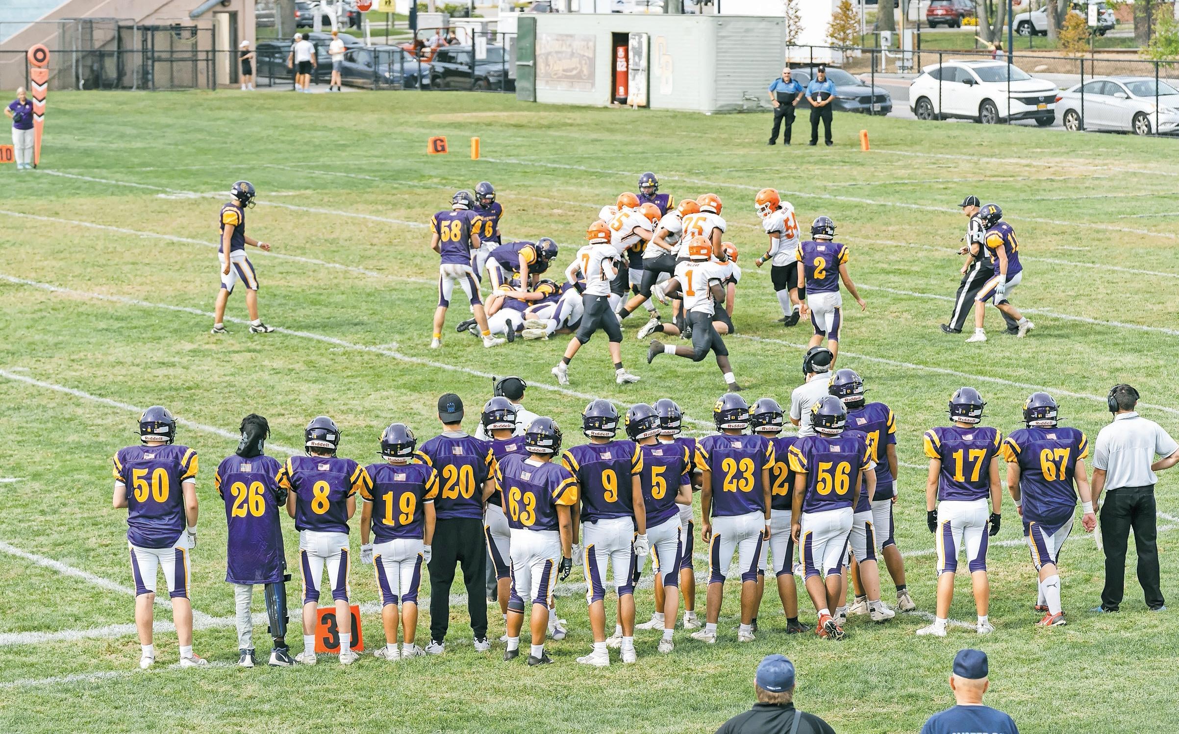 At Memorial Field, PTAs offered snacks and Baymen spirit wear, adding to the festive atmosphere. The homecoming game kicked off at 2 p.m. against the East Rockaway Rocks. Despite a determined effort, the Baymen fell to the Rocks with a final score of 40–26.