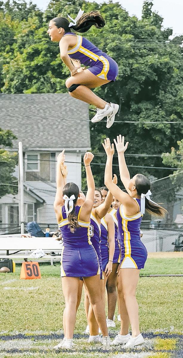 The varsity cheer squad energized the crowd.