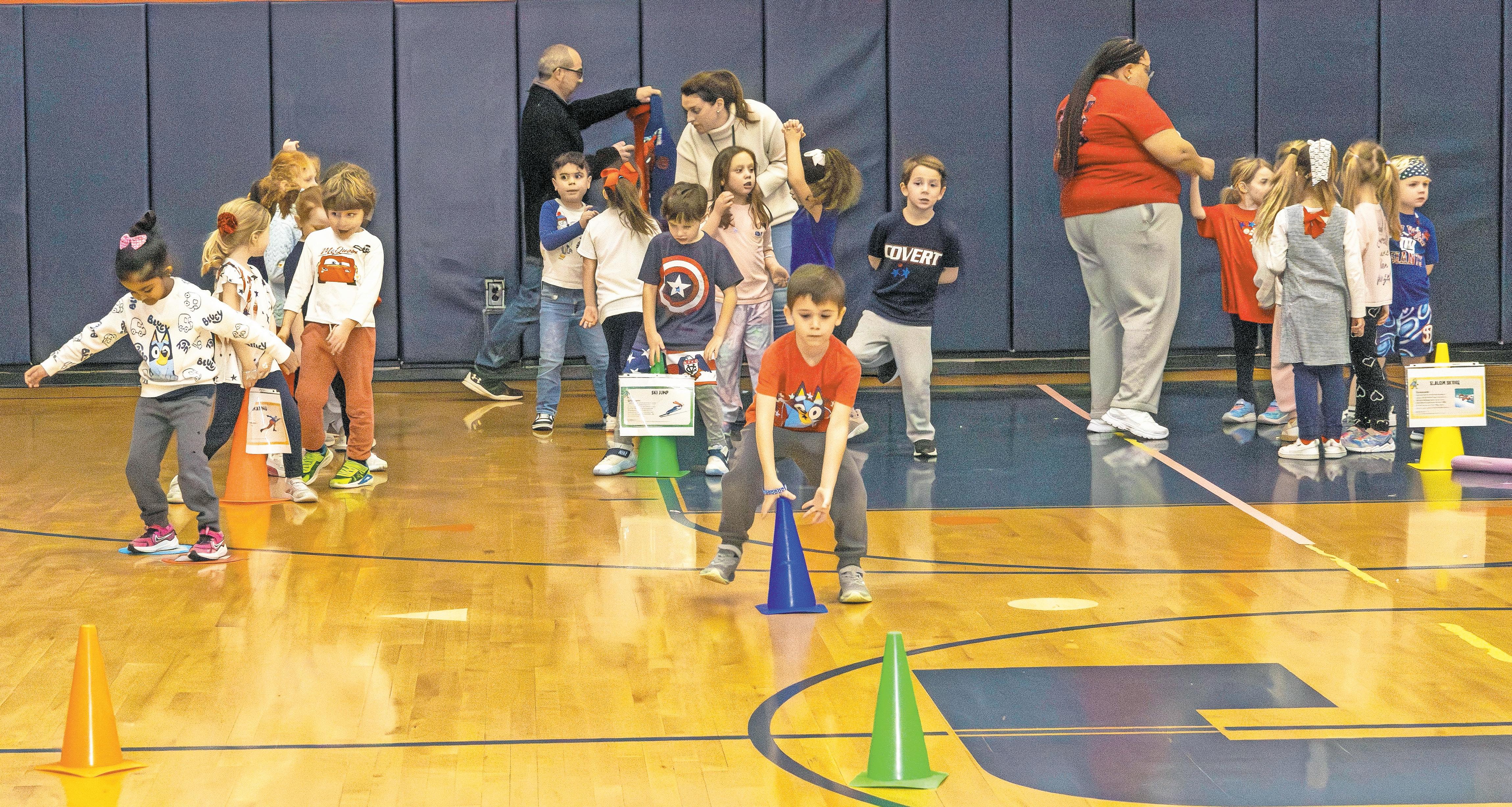 One of the evening’s highlights came at halftime, when 5-year-old Gianni Sacco of Rockville Centre won a crowdpleasing contest. Sacco raced across the court collecting items from the floor, freezing in place each time the music stopped, earning cheers from the stands and a postgame moment with Wizards player King Arthur.