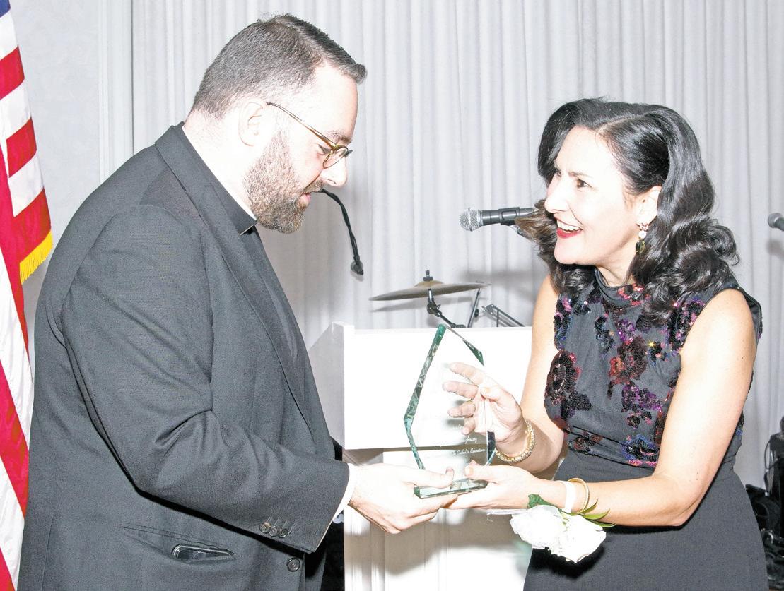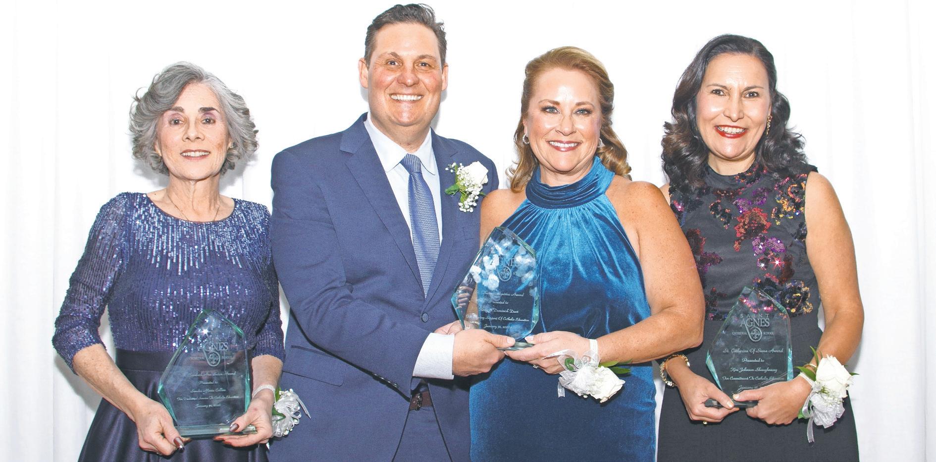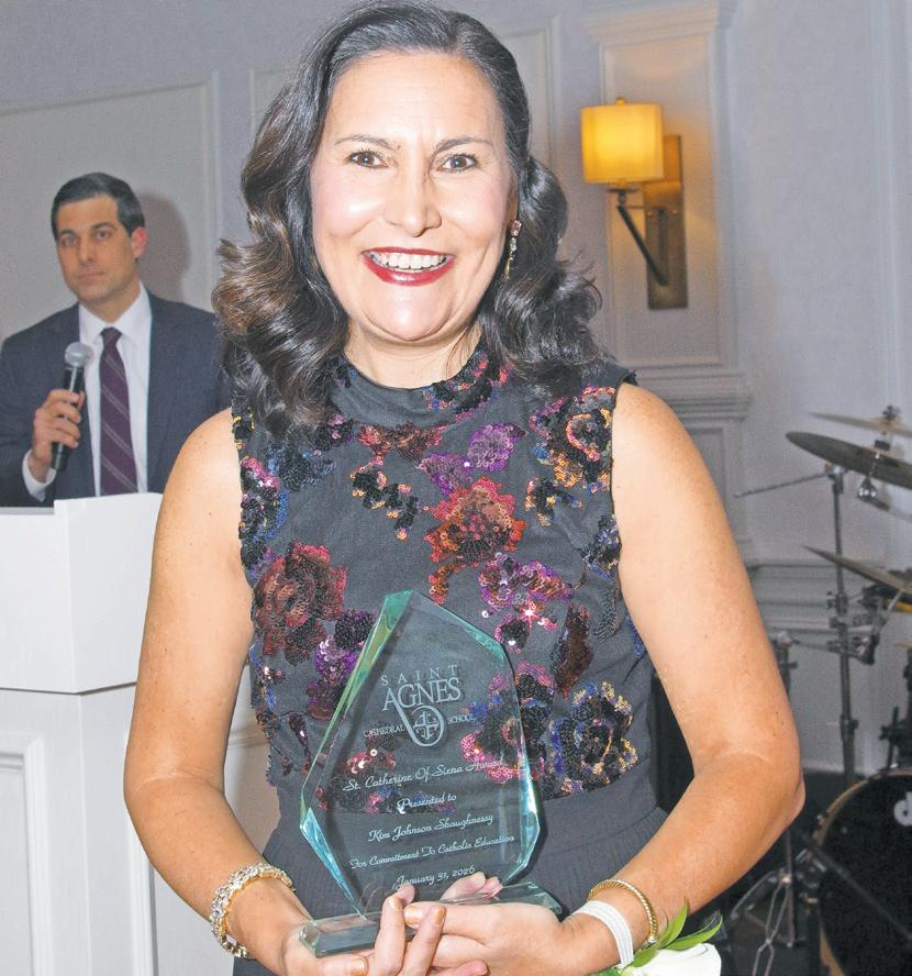 support of Catholic education, Kim Johnson Shaughnessy with the St. Catherine of Siena Award for commitment to Catholic education, and Sandra Collins with the St. Elizabeth Ann Seton Award for dedicated service.